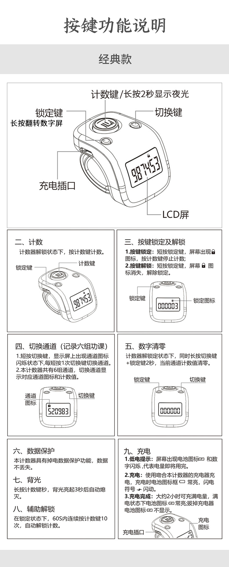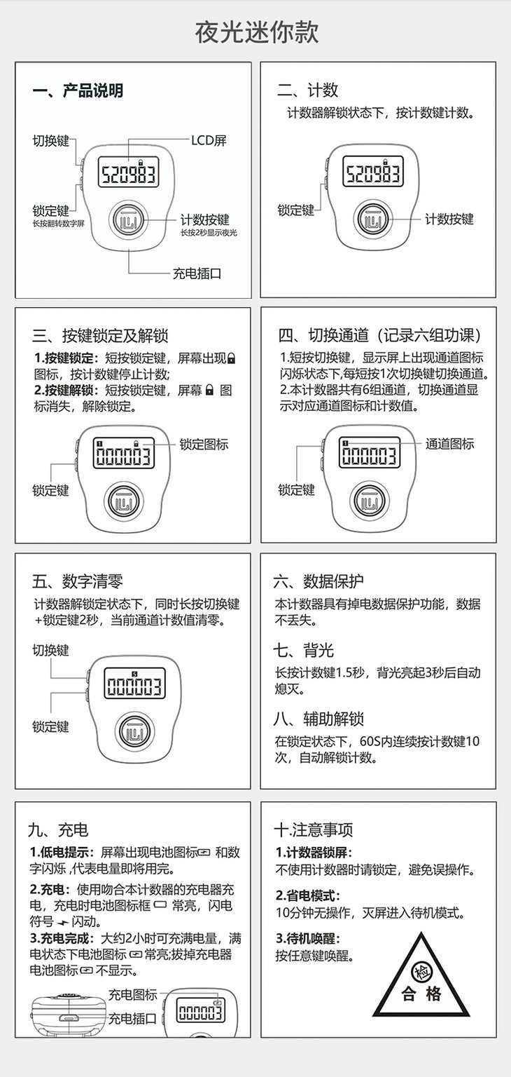 计数器 带夜光 6种功课握持舒适静音按键操作简单
