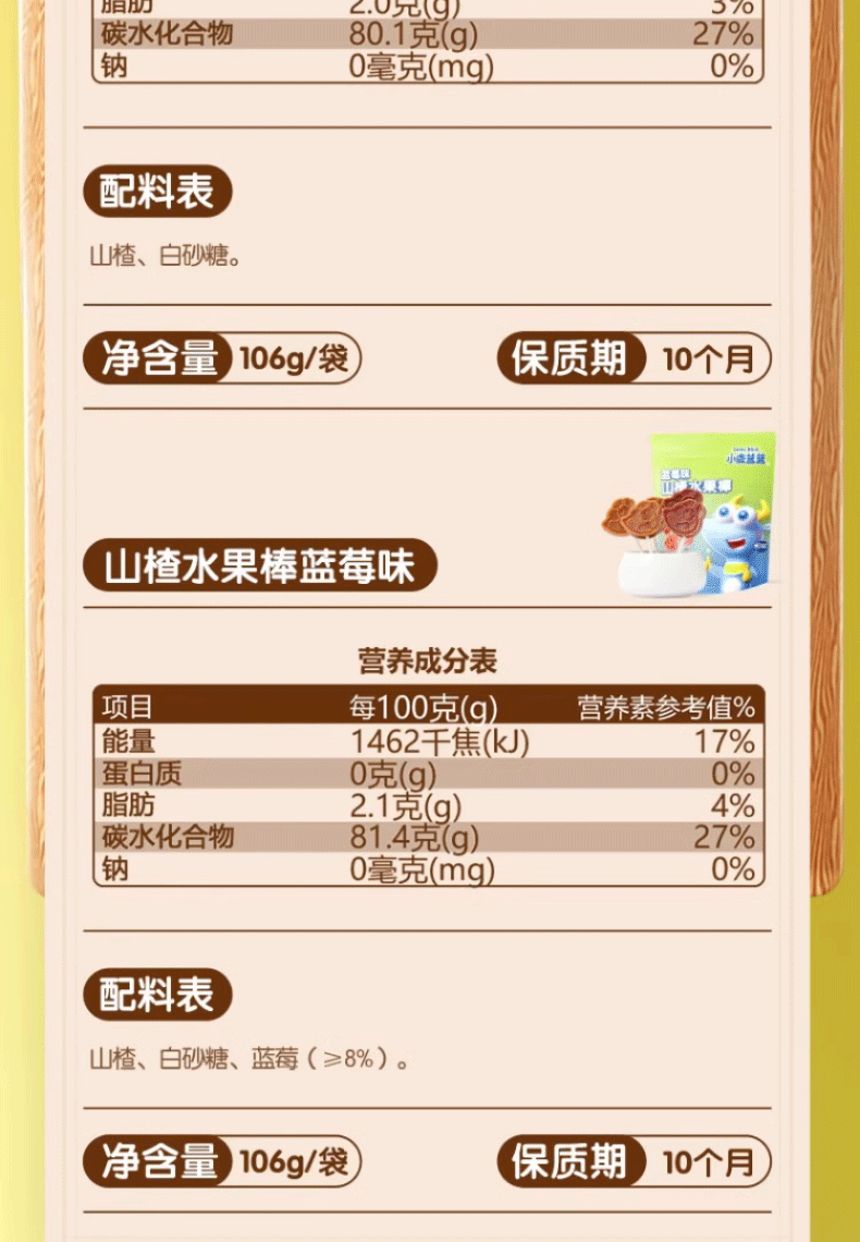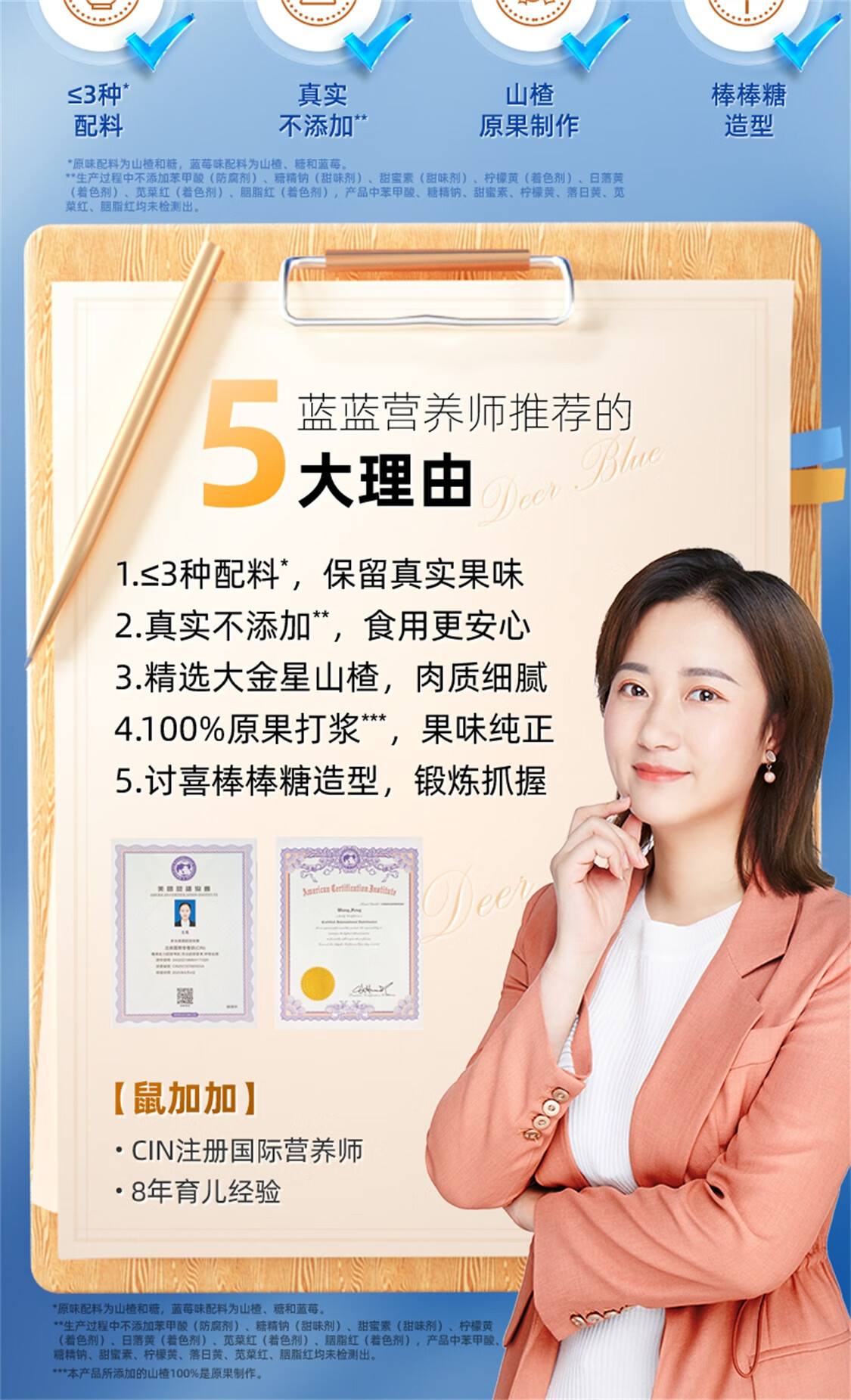 【包邮】小鹿蓝蓝山楂棒果肉条婴幼儿零食鲜果干