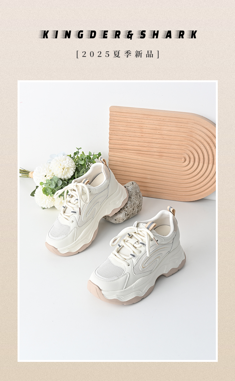 经典鲨2025年夏季新款牛皮革薄款网面透气舒适跑步运动休闲鞋女KW160-529181