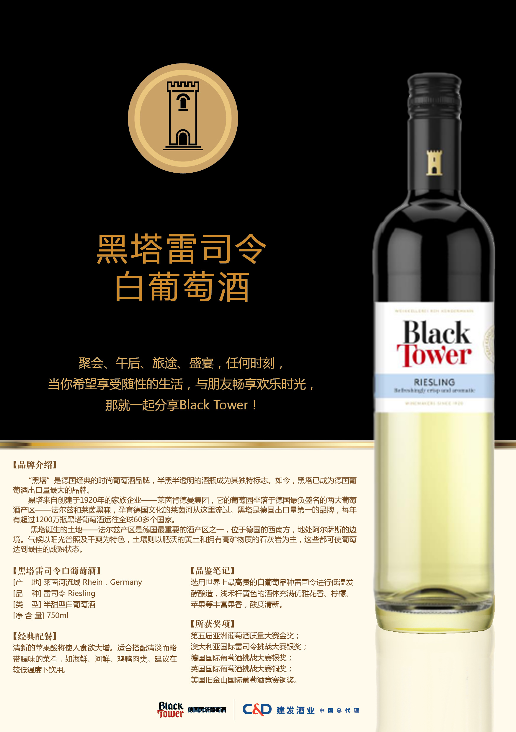 【露营微醺套餐】黑塔雷司令白葡萄酒x甘恰阿斯蒂起泡白葡萄酒 750ml*2 赠手提袋