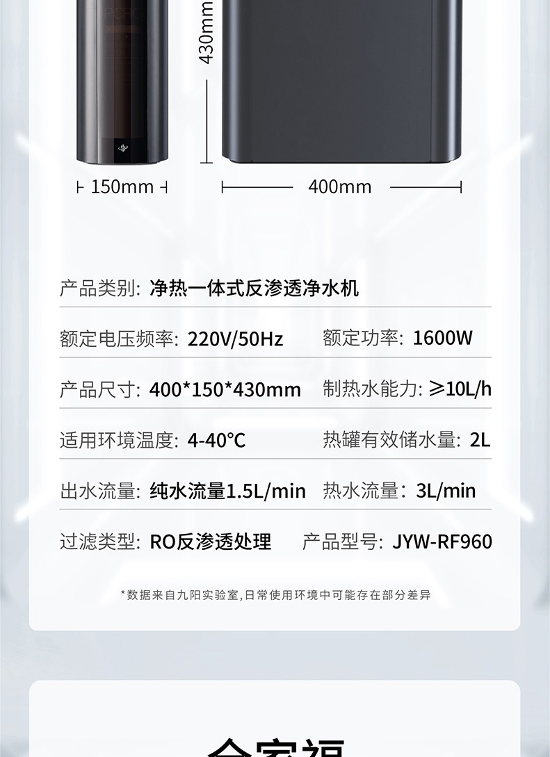 九阳(Joyoung)净热饮一体机 净水器 家用RO反渗透纯水机 厨房即热直饮机无桶大通量 【线下同款】JYW-RF960