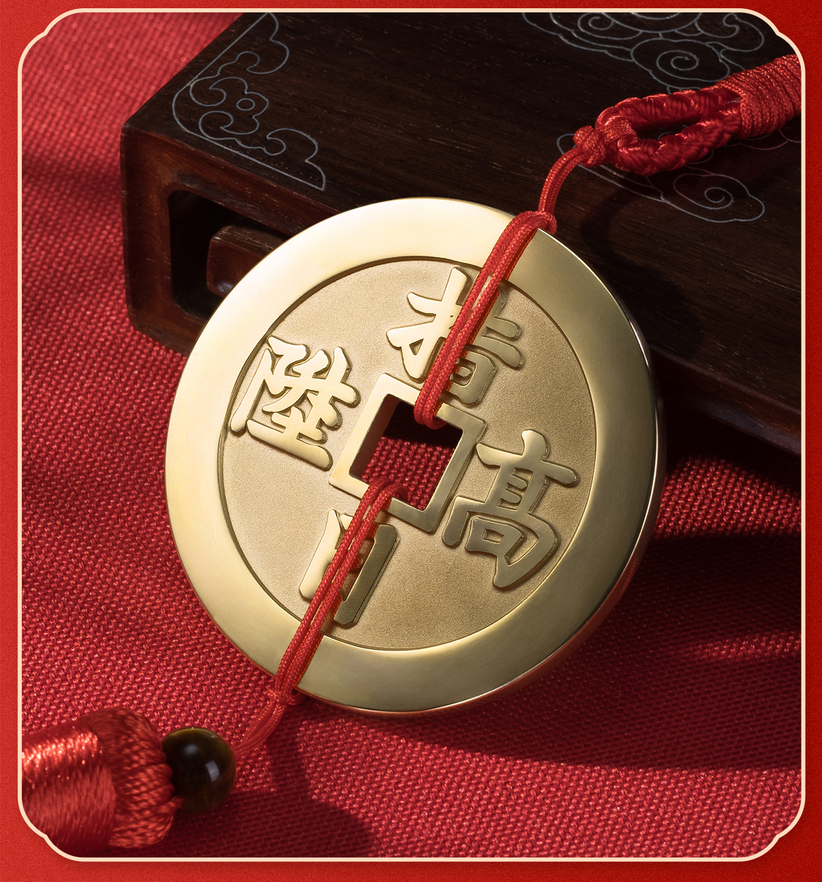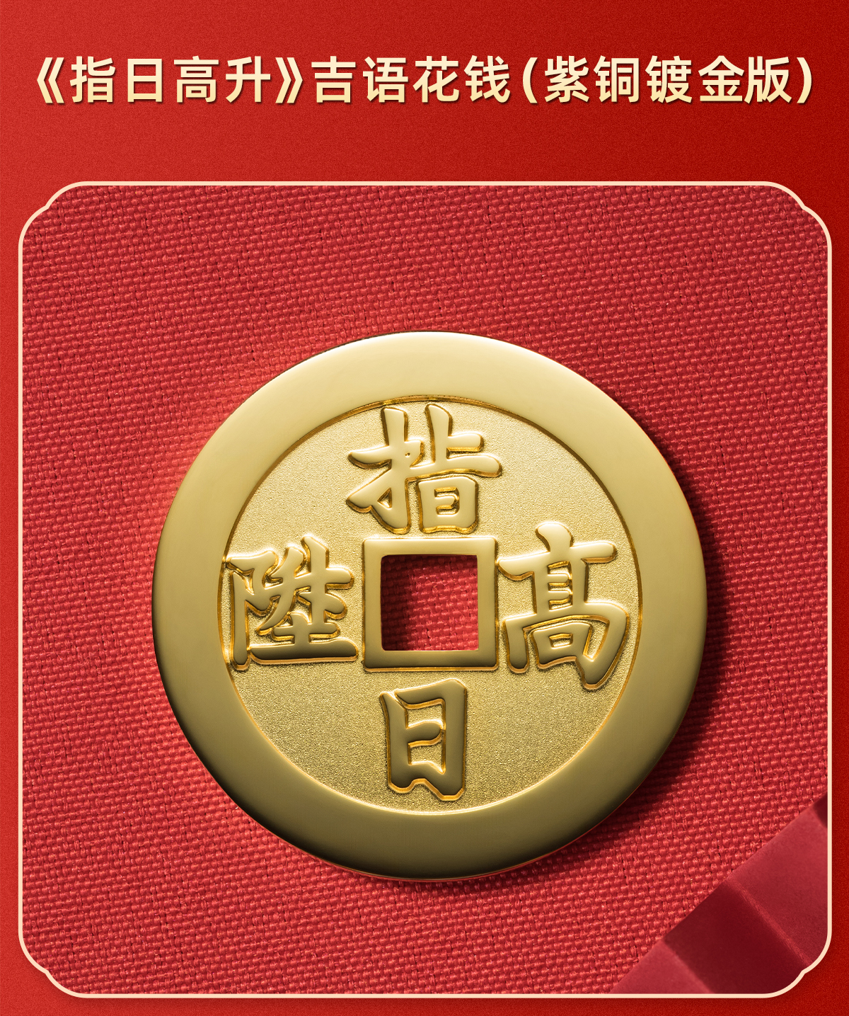 铜师傅《指日高升》吉语花钱 紫铜黄铜吊坠 佩戴祈福吉祥饰品挂件