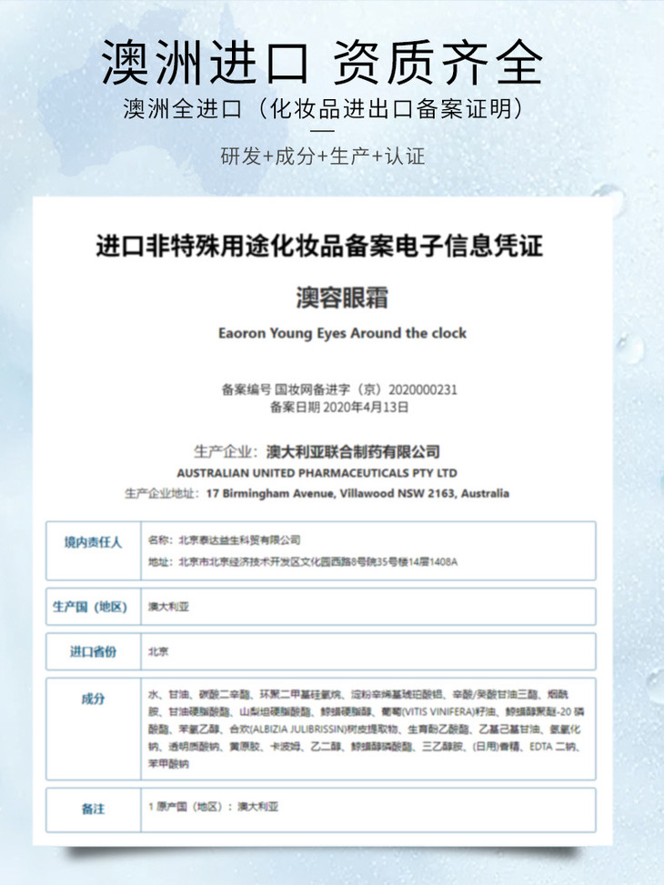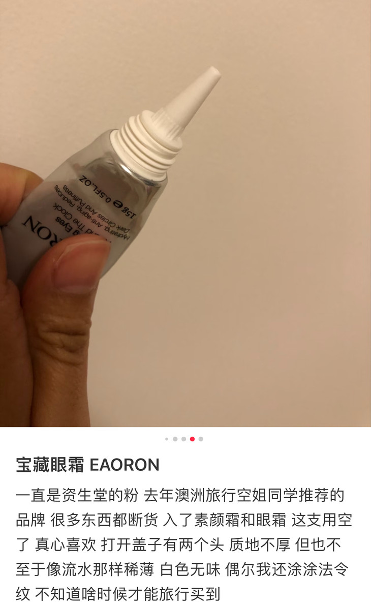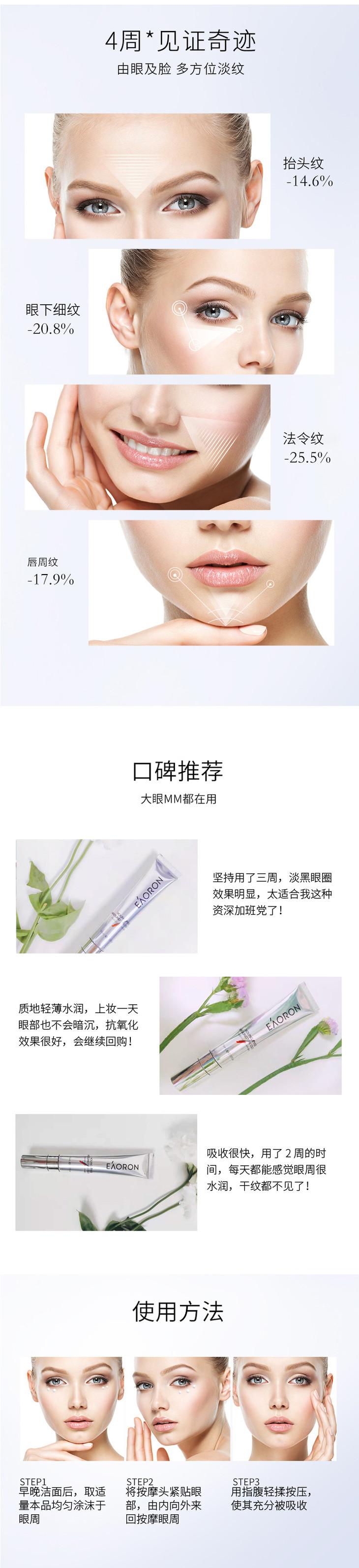澳洲EAORON的眼霜也上啦,可以和白白丸,抗糖丸和素颜霜一起配一套啦!这支青春眼霜,对色素型、血管型黑眼圈,还有假性干纹,都有一定的帮助,关键是,39块的价格,也是太过于性价比了!
