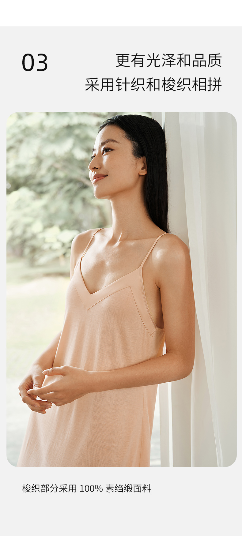 【深睡眠蚕丝睡衣】金三塔100%桑蚕丝睡裙女真丝针织吊带裙新品 YZFEA302