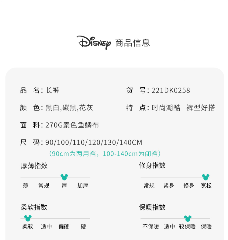 迪士尼童装男童运动束脚裤春秋季中大童宝宝柔软舒适休闲长裤