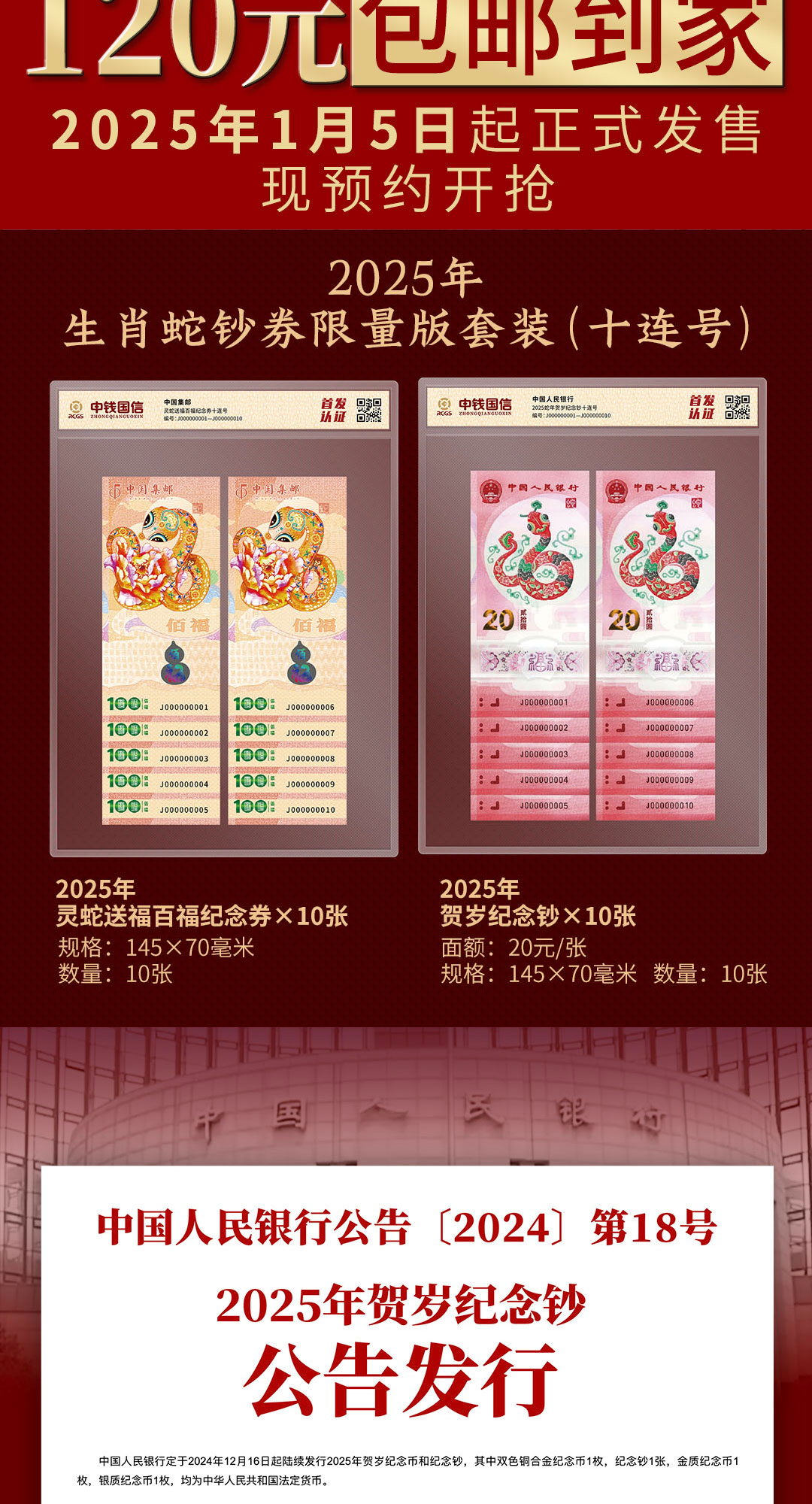 《灵蛇送福》2025年生肖蛇钞券限量版套装