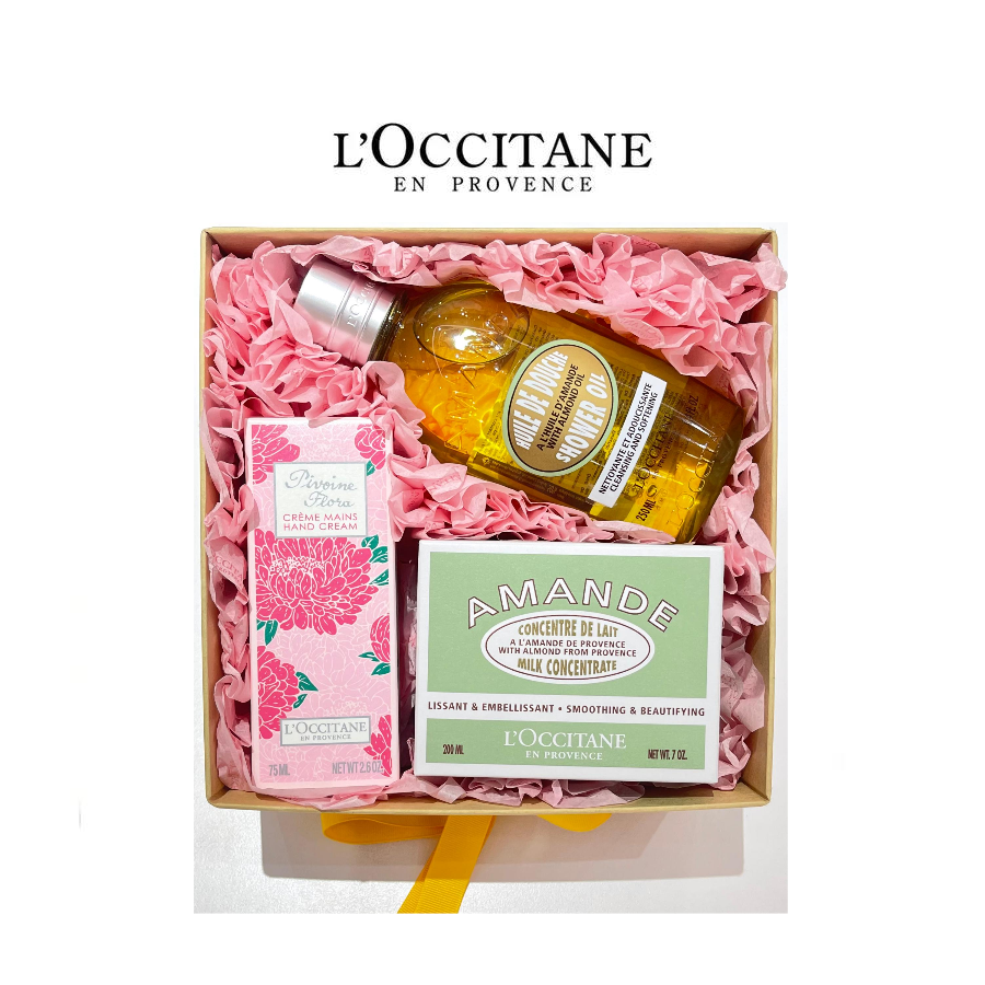 【1F】欧舒丹套装:甜扁桃紧致沐浴油250ml +甜扁桃紧致美体乳200ml +芍药花香润手霜75ml