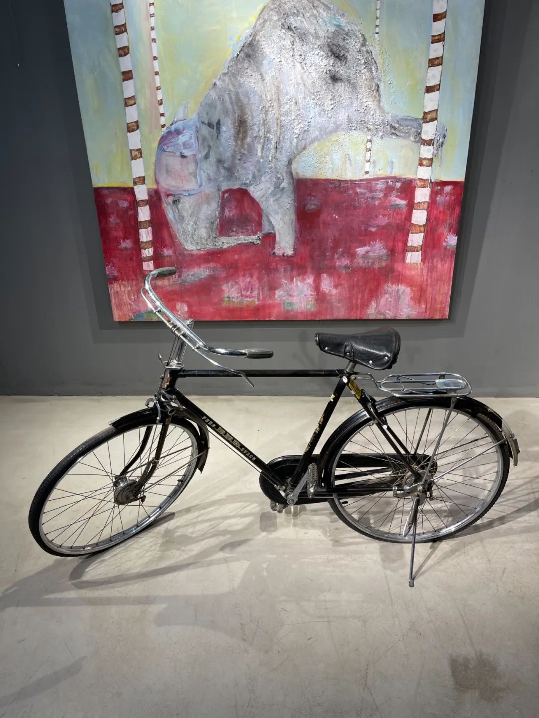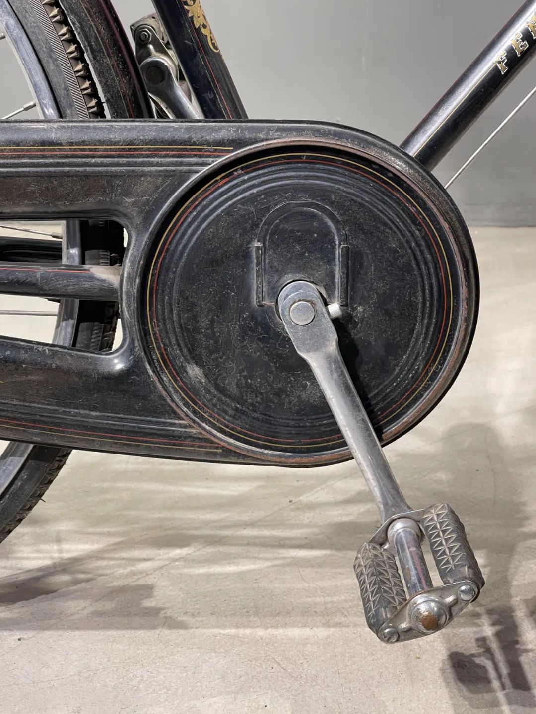 此鳳凰牌老自行车,制作严谨,具备解放后工业产品之优雅实用气质,有如一件艺术品般的完美动人,是清代引进西方机械制造科技发展历程中的经典之作,如图所示,除正常使用痕迹与局部大漆剥落外,轮胎未充气,可能需要置换,除此以外,基本保持完整。是一件的收藏级老自行车。未经测试是否仍然可以正常使用。