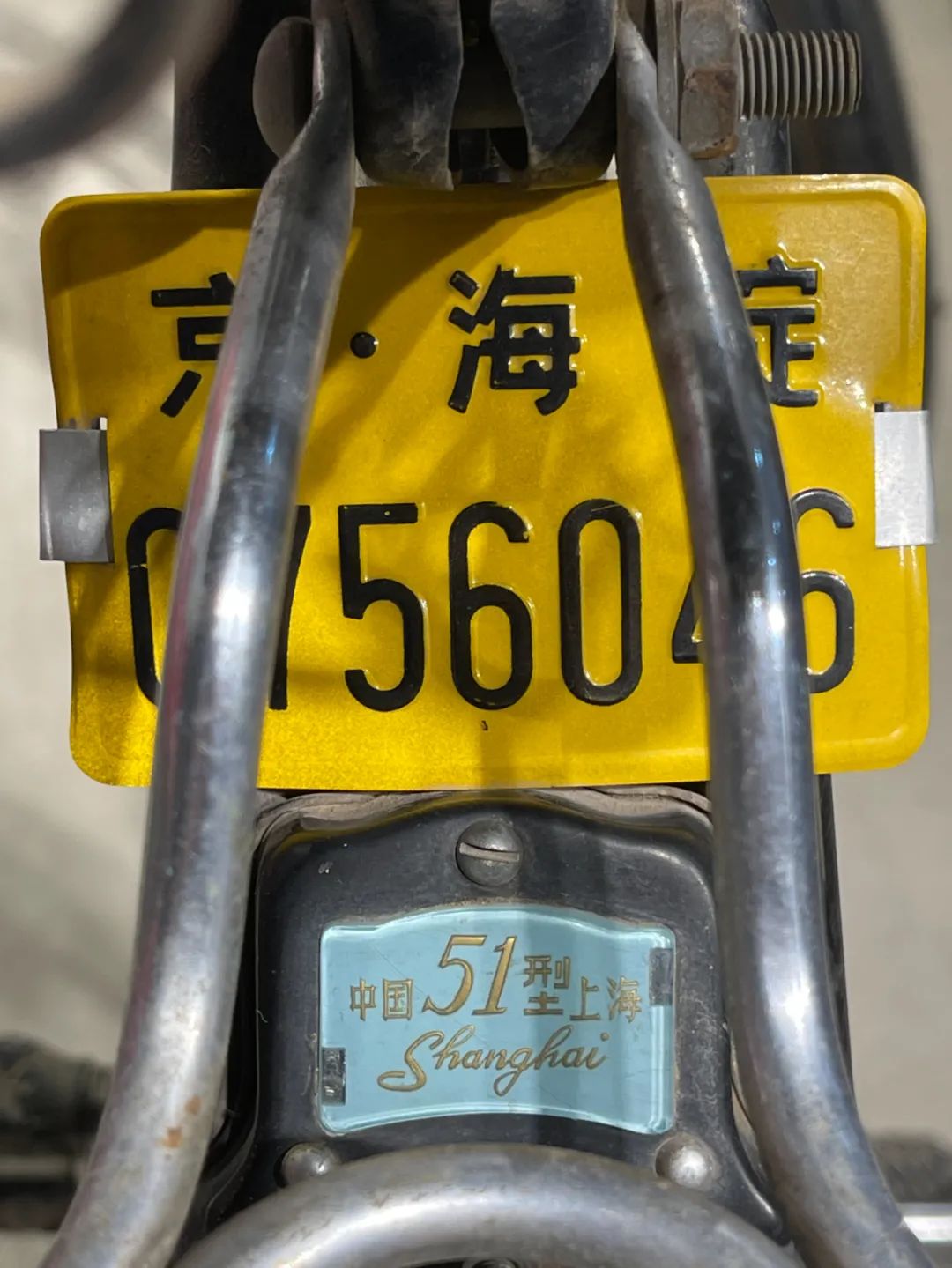 此载重式鳳凰牌老自行车,整体设计精巧,造型简约实用,商标纹饰与金属表面处理细致,整体精致贵气,历经半百年仍然保存完整,并且保留北京海淀自行车牌照,非常难得。