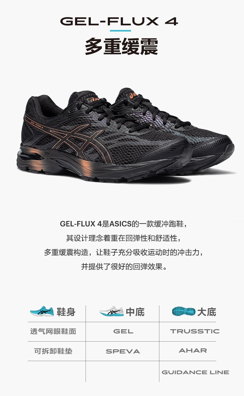 【3-7天发货】ASICS亚瑟士秋季男女跑鞋GEL-FLUX 4回弹缓震透气网面复古运动鞋