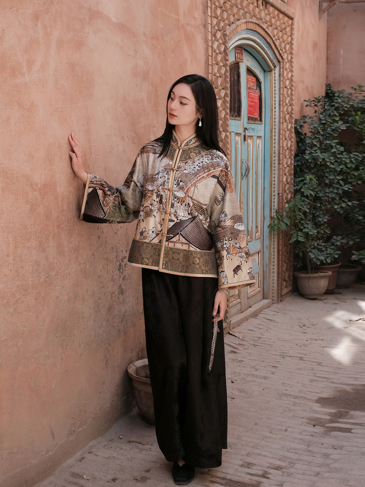 盛唐牡丹 | 缠枝喜鹊纹系带上衣