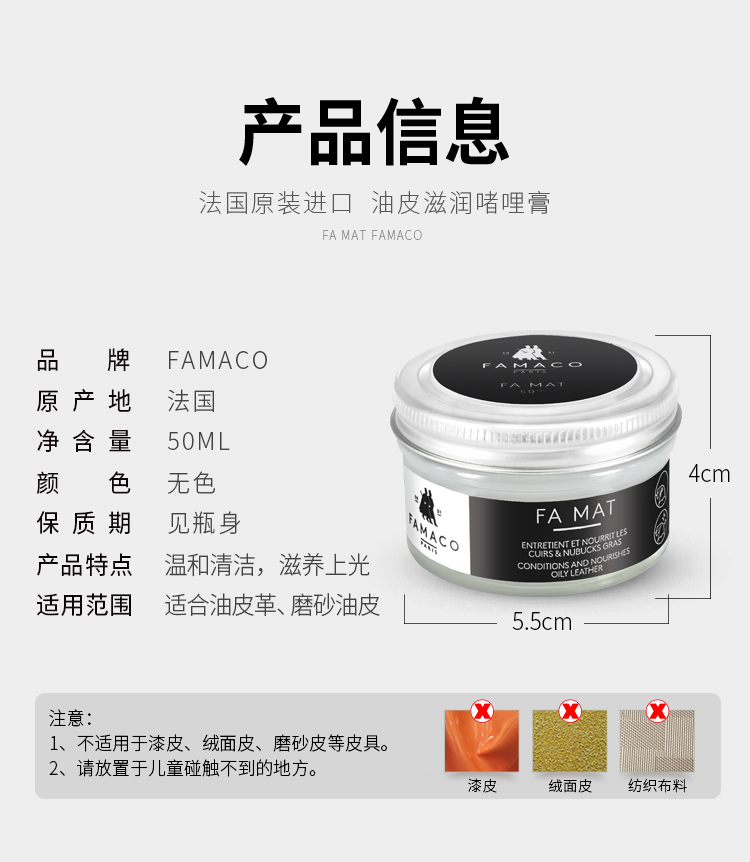 法国进口Famaco油皮滋润啫哩膏玻璃油 鞋油0304