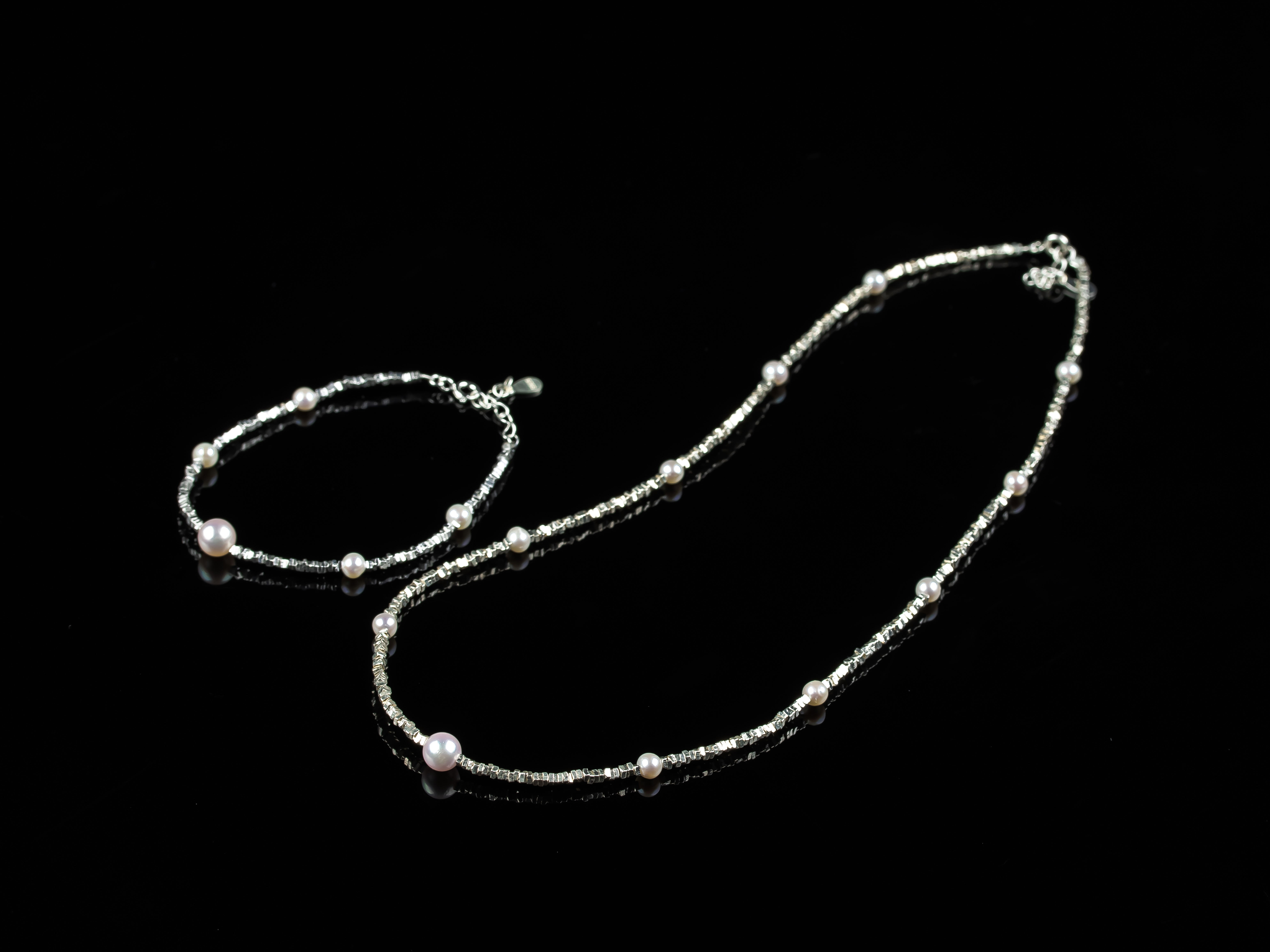 D428012 925银镶akoyo珍珠套装 设计新颖, 主珠尺寸:6.5mm,附珠尺寸:4.5mm akoyo珍珠项链特价:588/条 akoyo珍珠手链特价:688/条 套装特价:1188/套