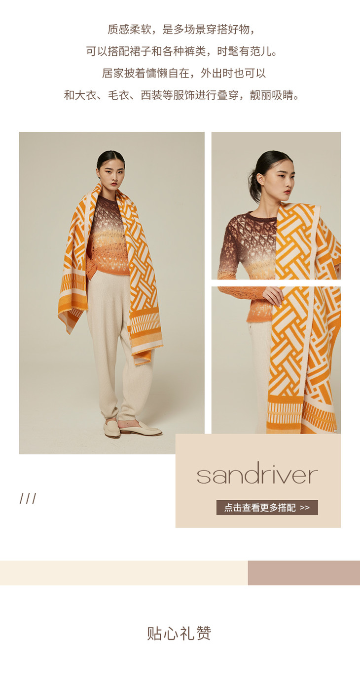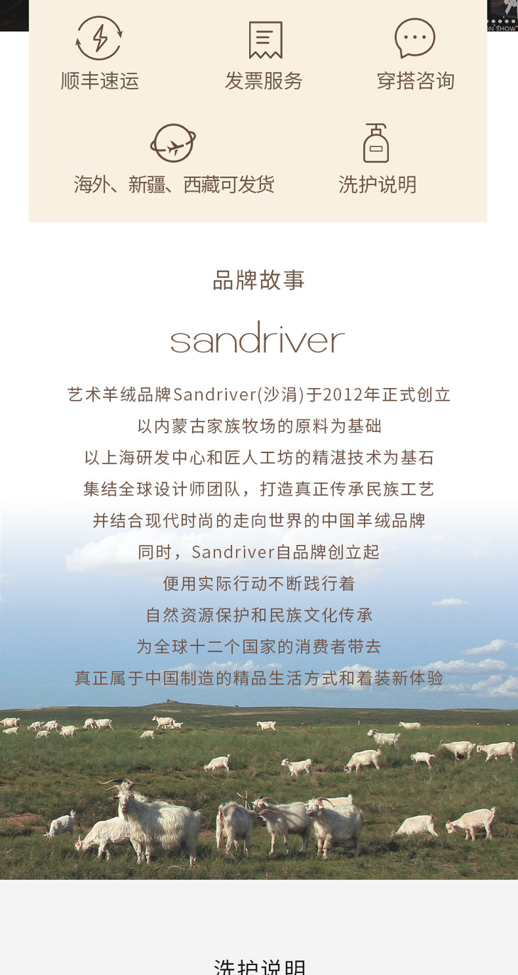 历年在巴黎时装周亮相,享誉世界的艺术羊绒品牌[Sandriver 沙涓]由羊绒布道者郭秀玲女士创立。阿拉善自有牧场纯种羔羊绒,日本国宝设计师小筱顺子,上海自有基地精工细作。承载羊绒情怀,坚持匠人品质。