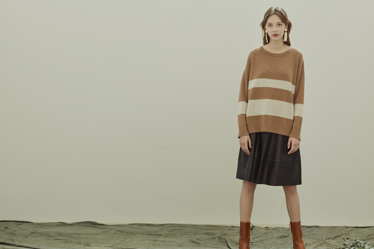 不规则的图案增添层次感,羊绒独特的材料性质使得面料垂坠感良好。微醺的驼色里泛着时光的沉淀,沉积了斑驳的记忆,是静好岁月里不可失去的点点滴滴。