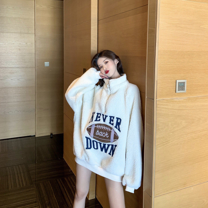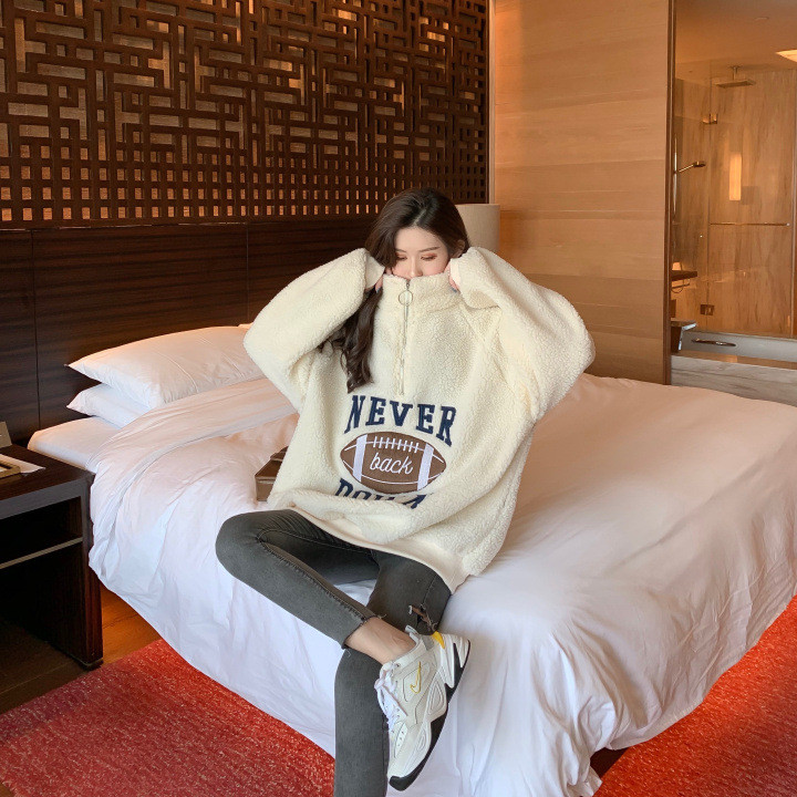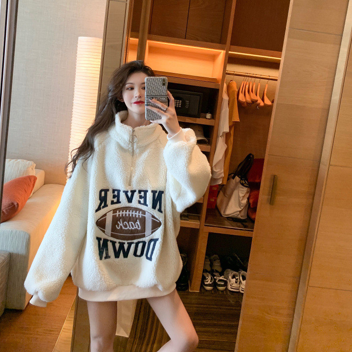 <有书独家>【服饰鞋包】羊羔毛绒卫衣2022新款女装秋冬加绒加厚宽松中长款立领外套