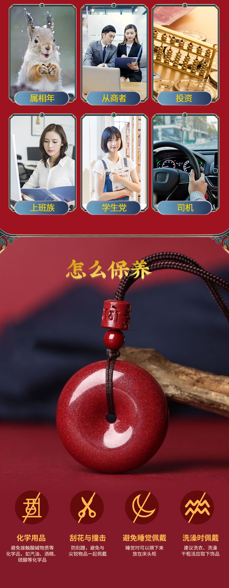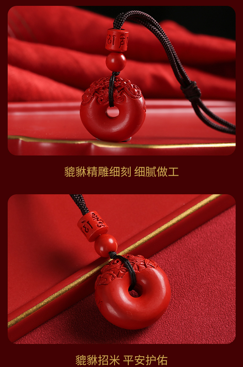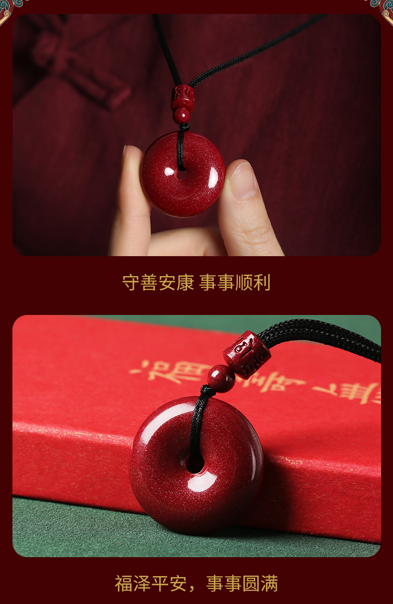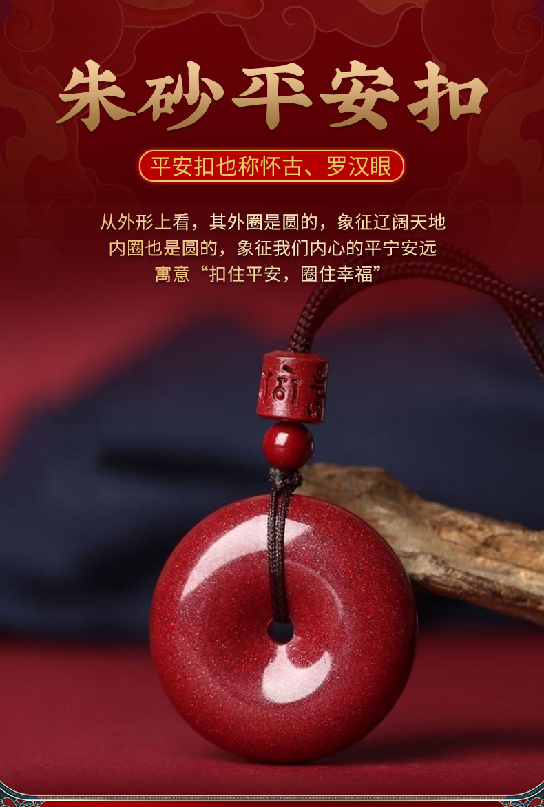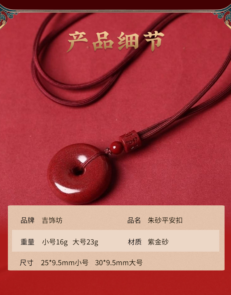 【祈愿吉品】紫金砂朱砂平安扣吊坠挂绳挂饰男女老小项链挂件正品