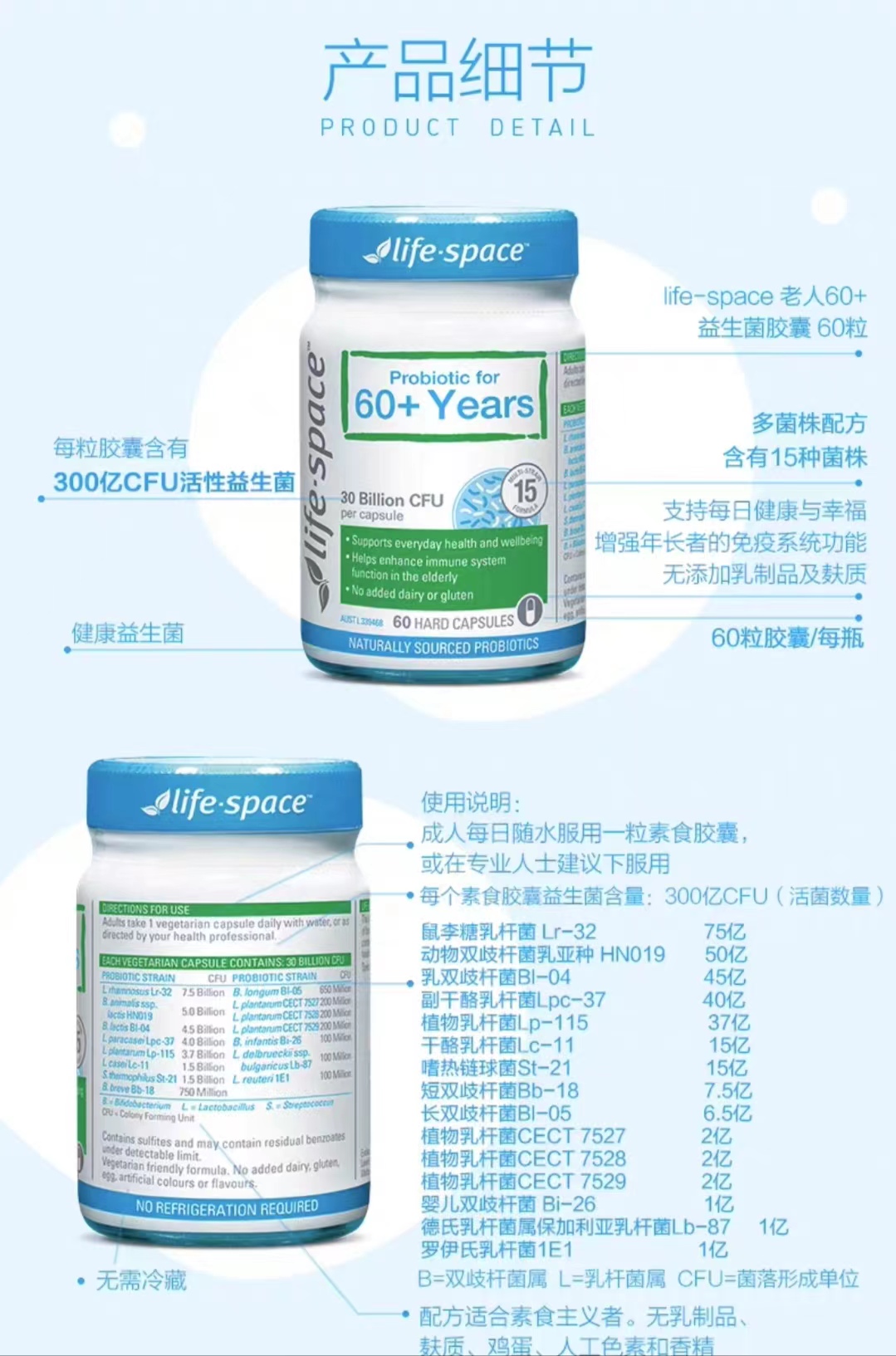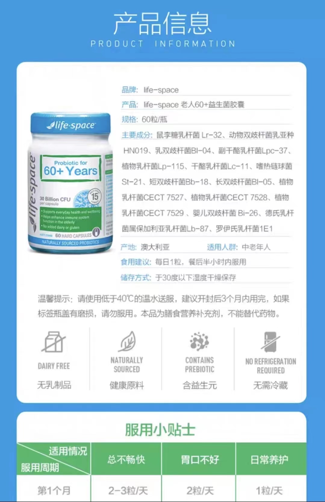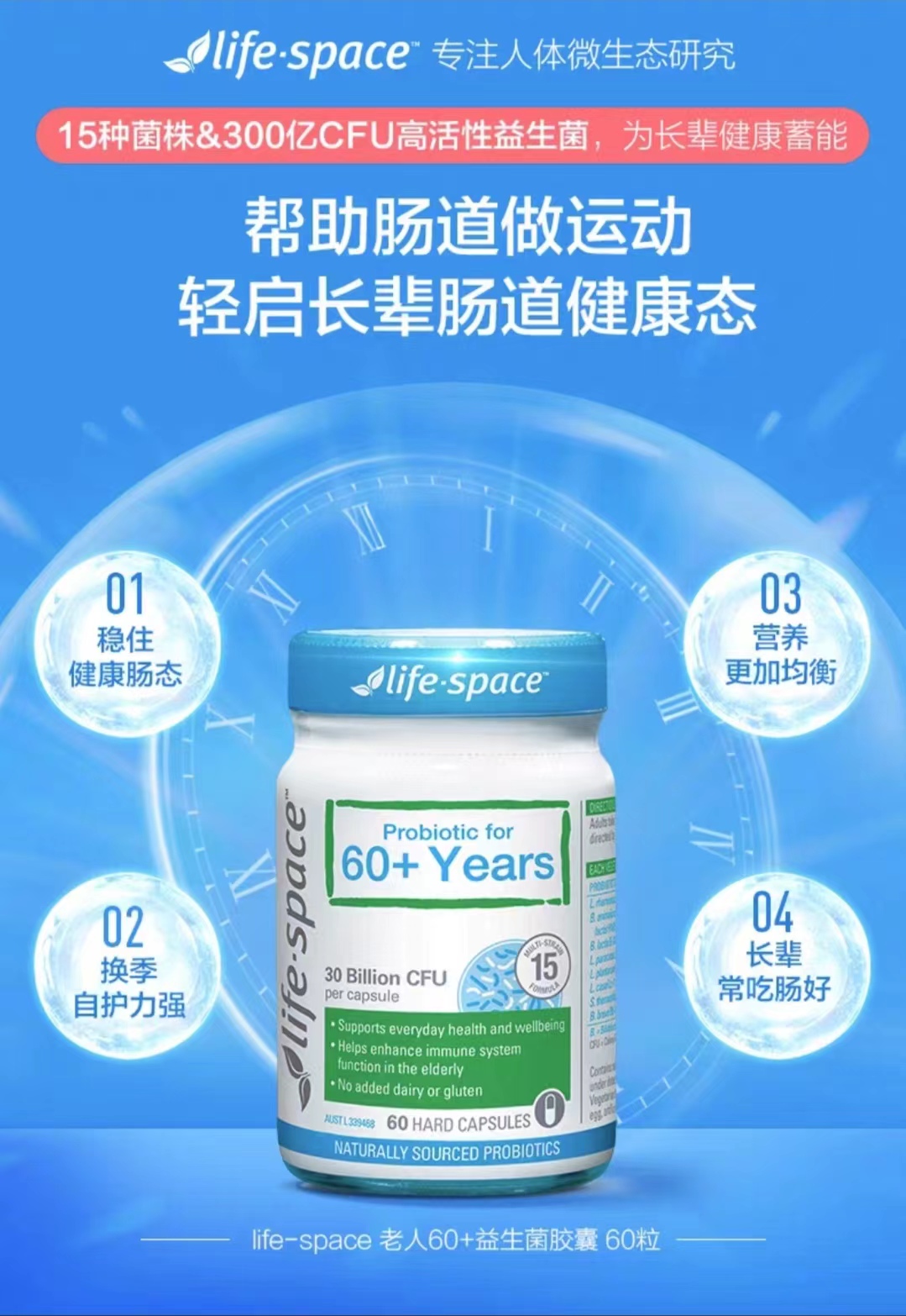 澳洲 Life Space益倍适 中老年 60+老人 益生菌胶囊 60粒