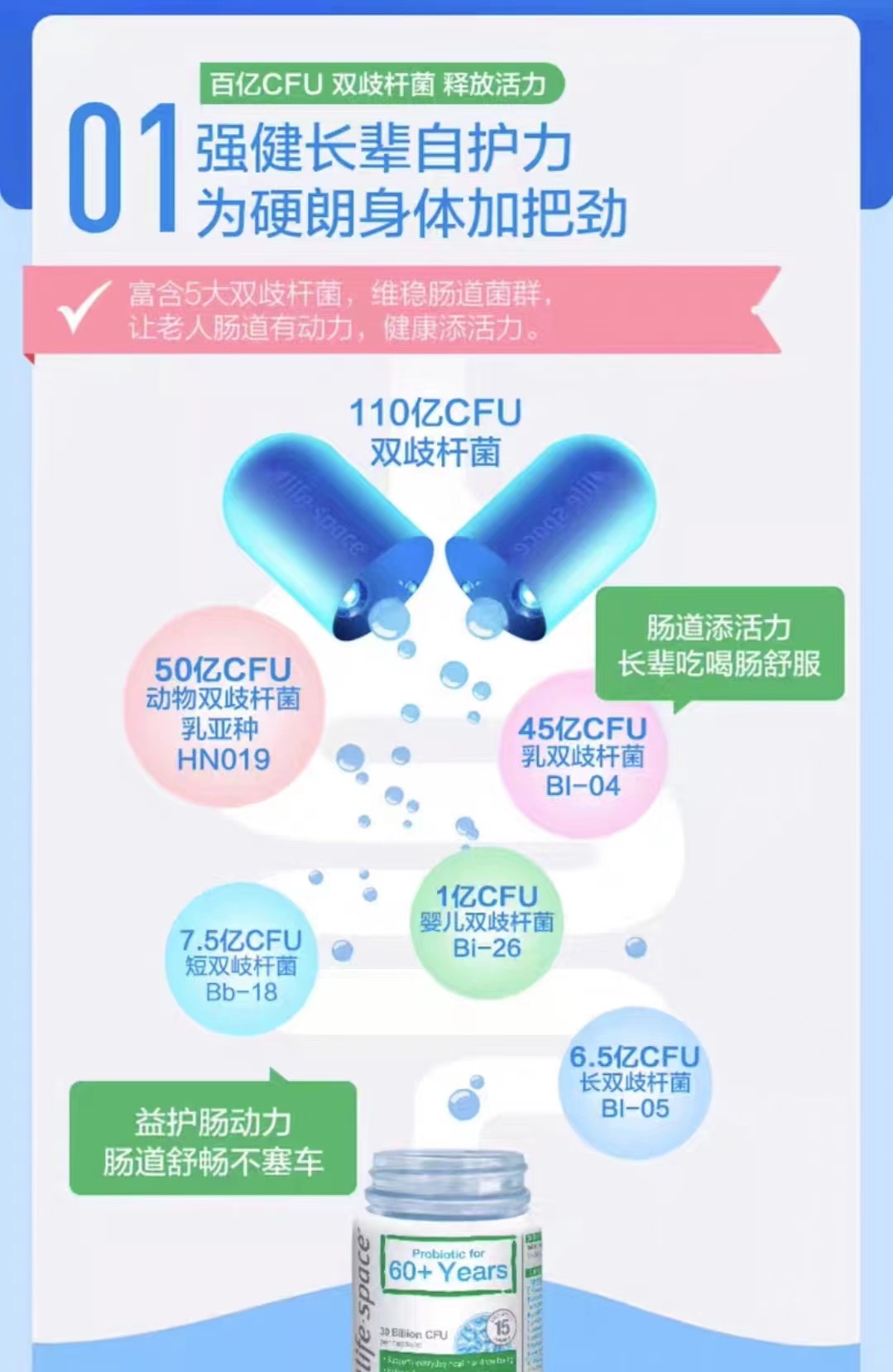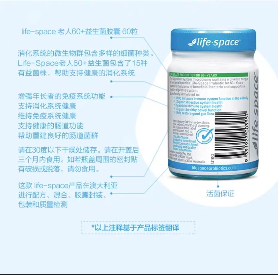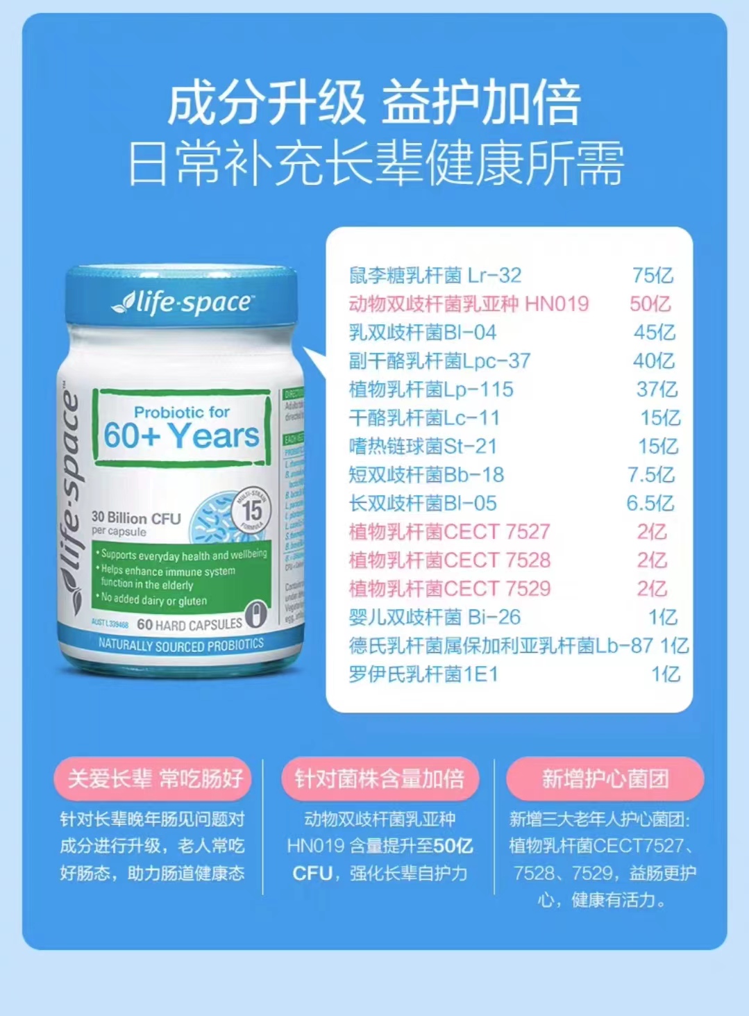 澳洲 Life Space益倍适 中老年 60+老人 益生菌胶囊 60粒
