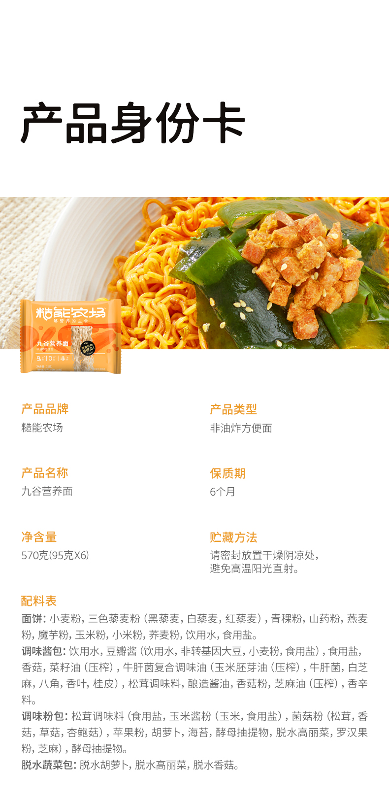 【9谷营养面】糙能农场 九谷营养面 菌菇口味方便面 6包/箱