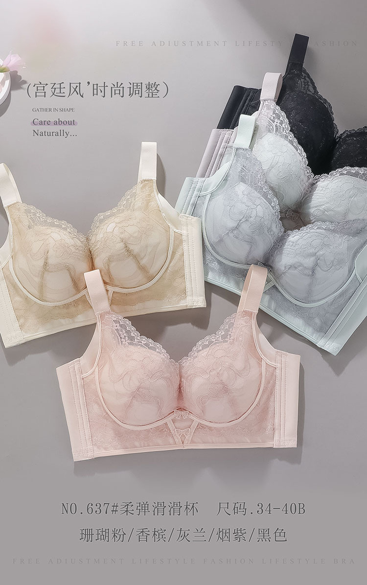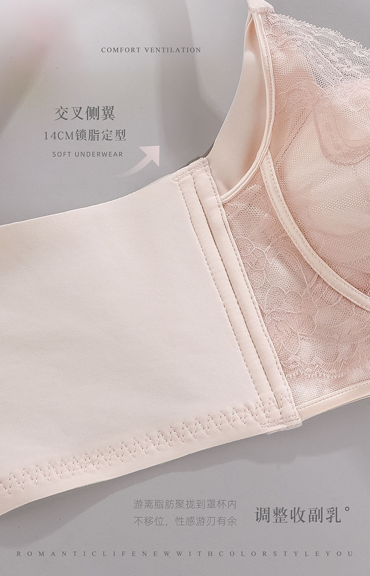 ZYQ-637 小胸聚拢内衣透气收副乳无钢圈莫代尔上托显大调整型蕾丝文胸女士(单件)