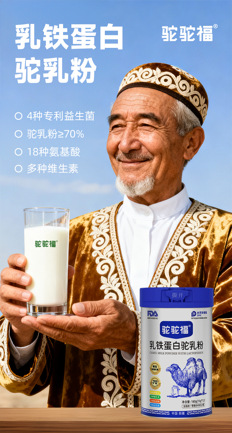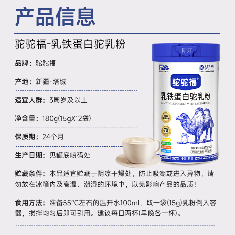 驼驼福·乳铁蛋白驼乳粉180g(15g*12) 可以喝的【沙漠黄金】