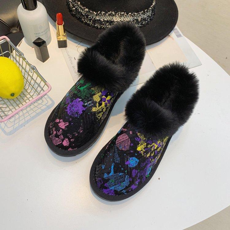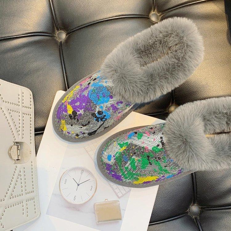 品牌:幽兽 后跟高:平跟 货号:A109 上市年份季节:2022年秋季 鞋头款式:圆头 跟底款式:平底 内里材质:人造长毛绒 开口深度:浅口 款式:乐福鞋 帮面材质:亮片布