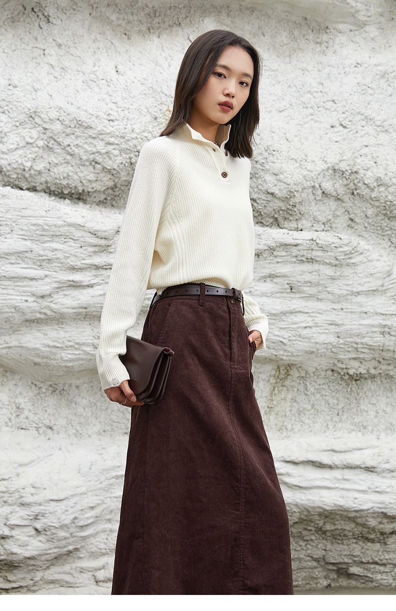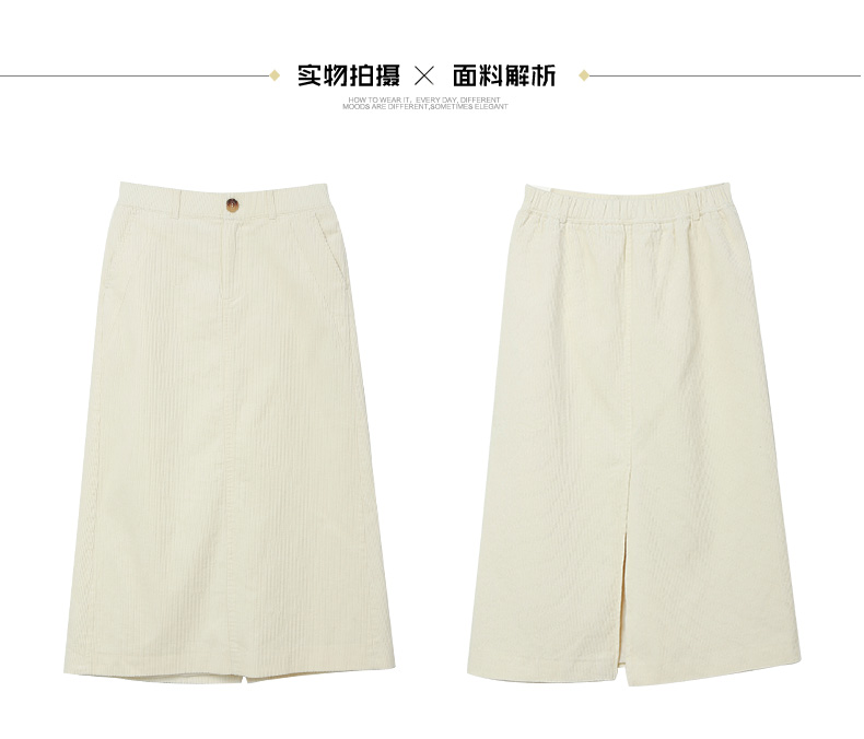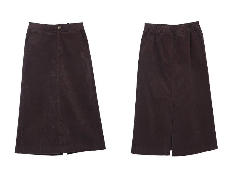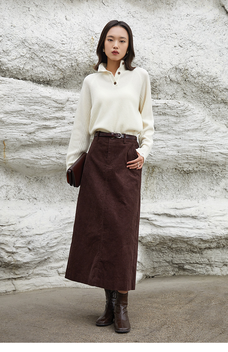 秋冬复古咖色灯芯绒高腰过膝半身裙 显瘦遮胯 A 字版型后开叉设计感通勤百搭长裙