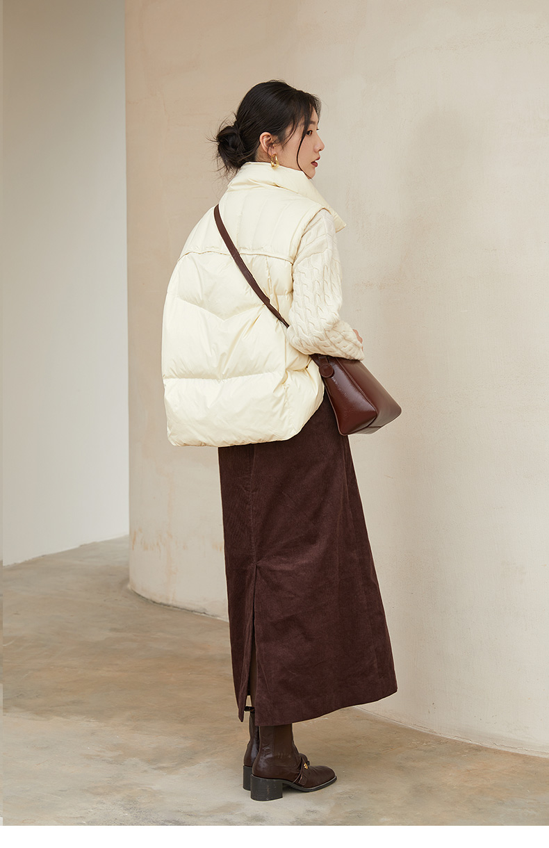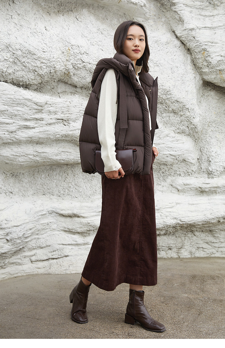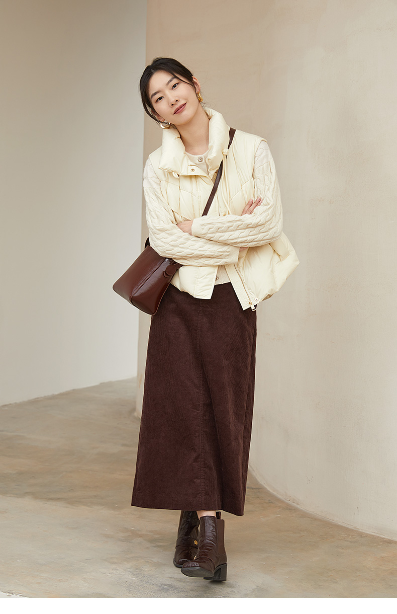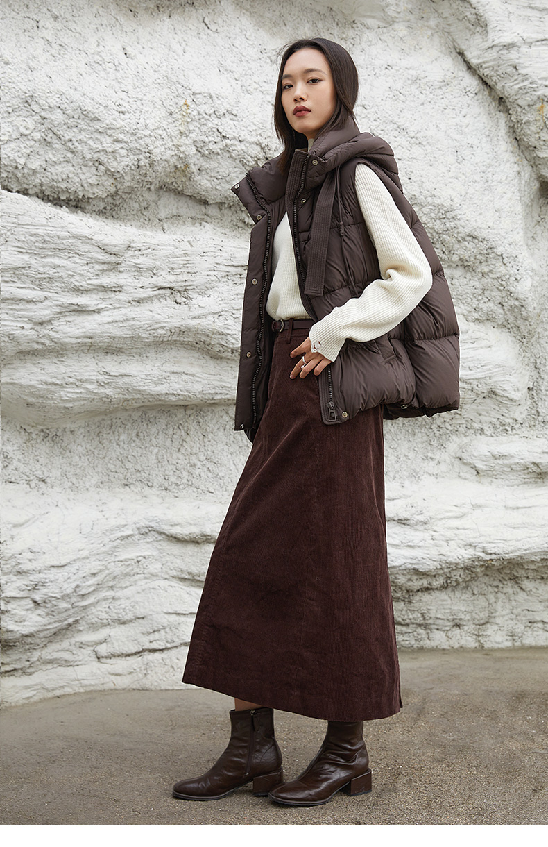 秋冬复古咖色灯芯绒高腰过膝半身裙 显瘦遮胯 A 字版型后开叉设计感通勤百搭长裙