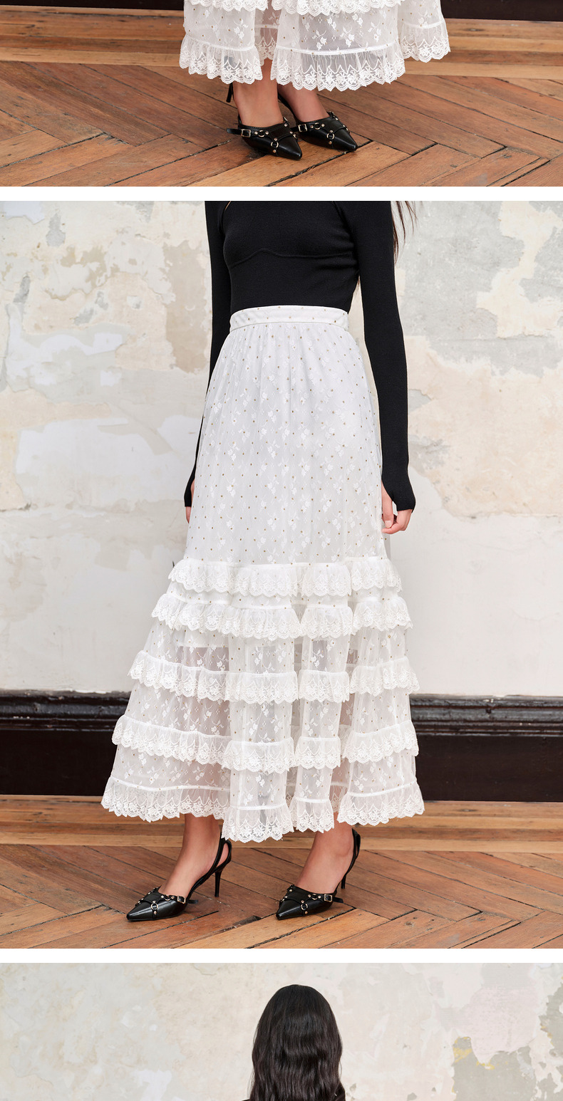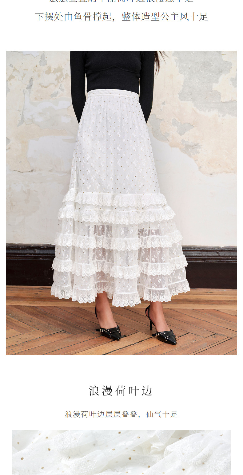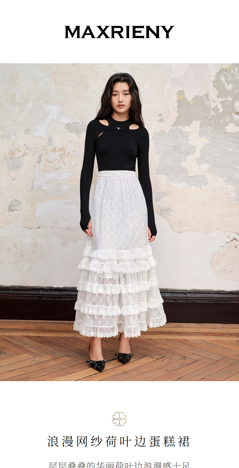 MAXRIENY仙美浪漫网纱荷叶边蛋糕裙高腰长半裙(货号:MC88SK582)