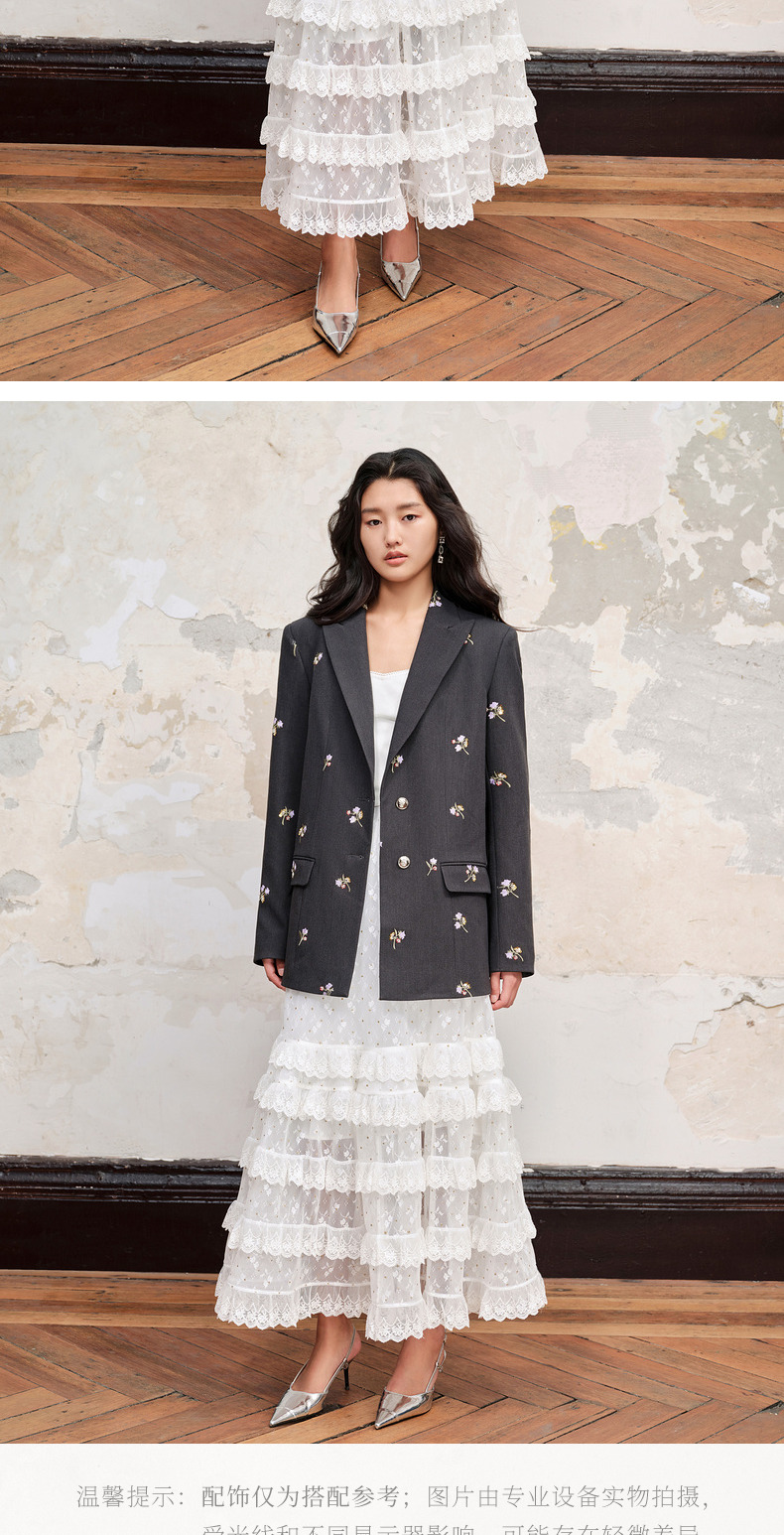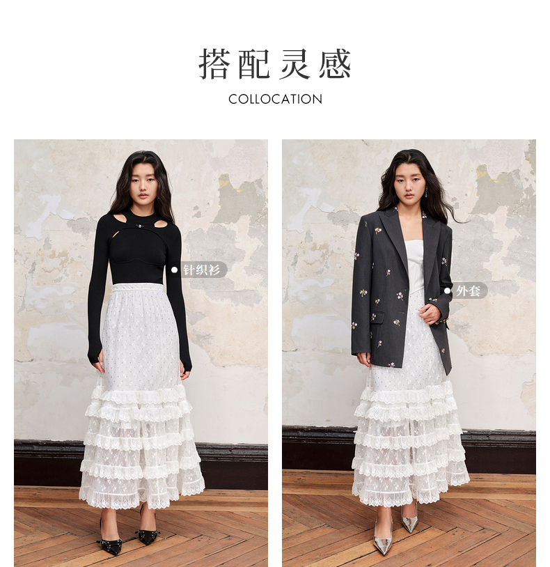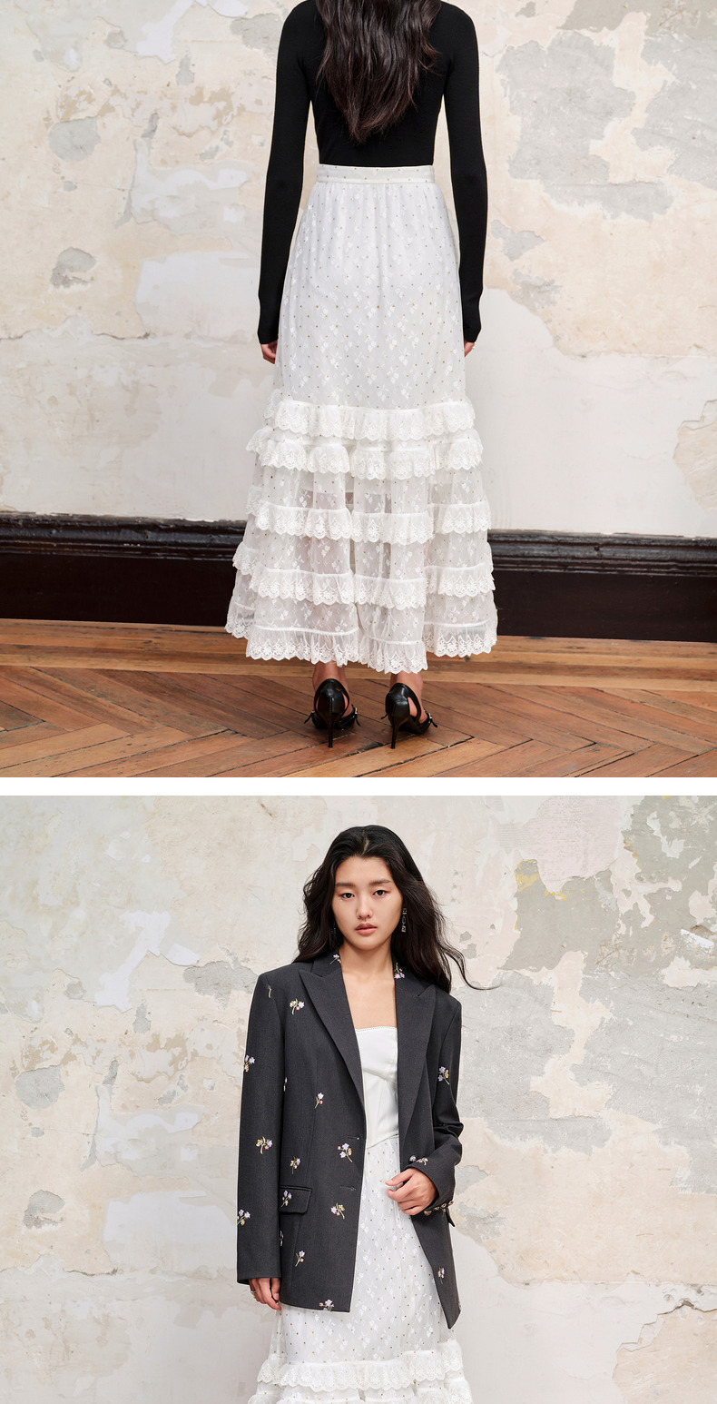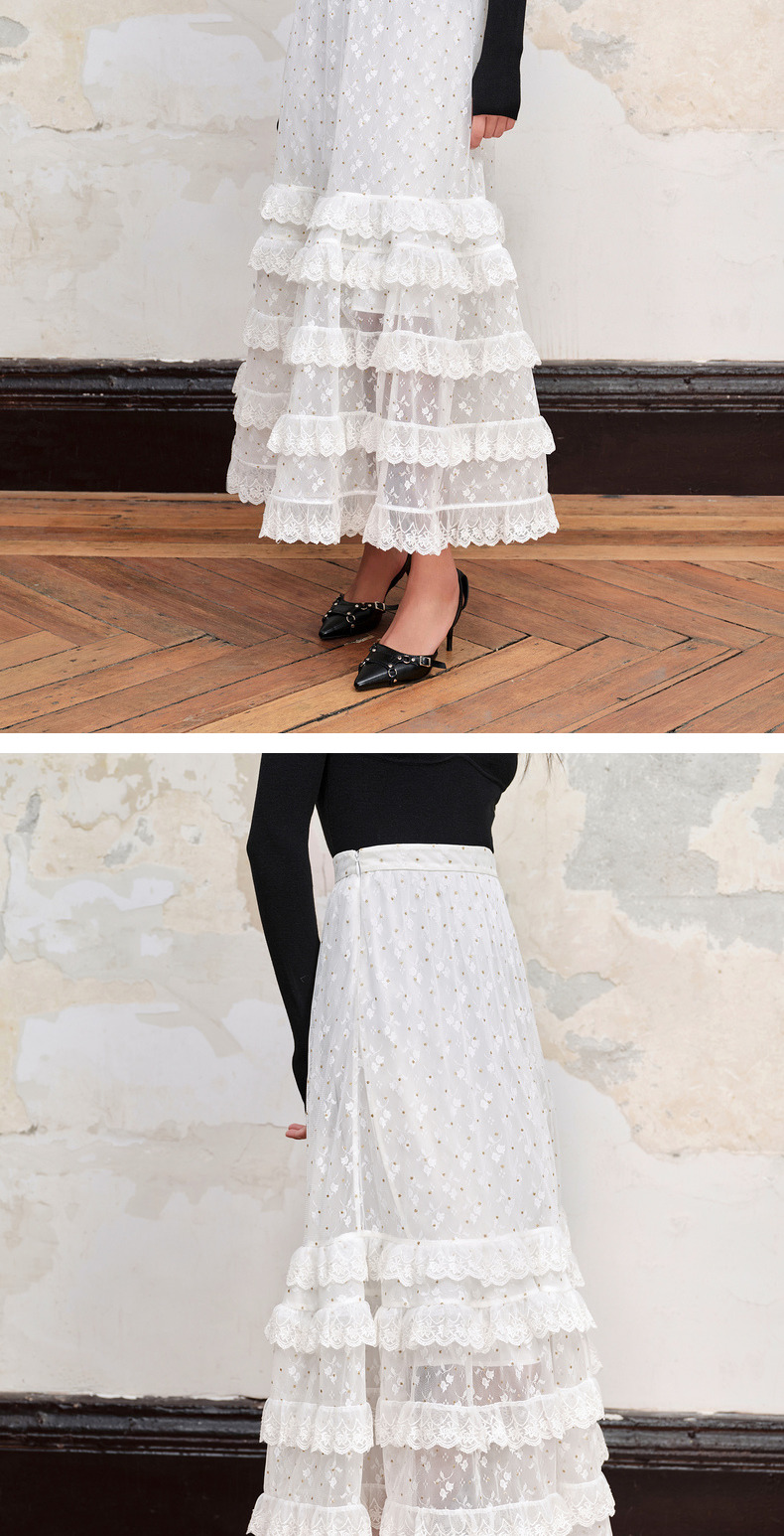 MAXRIENY仙美浪漫网纱荷叶边蛋糕裙高腰长半裙(货号:MC88SK582)