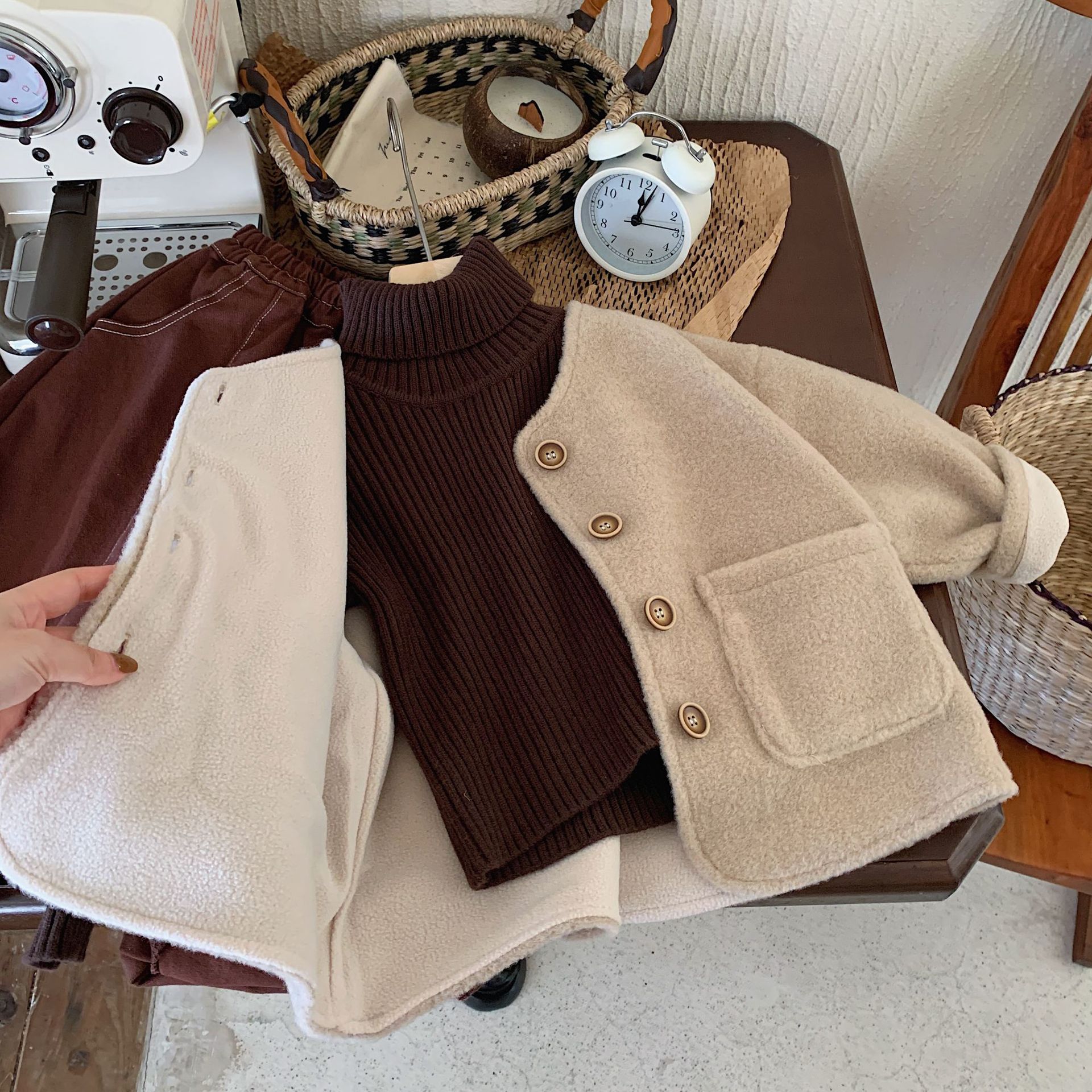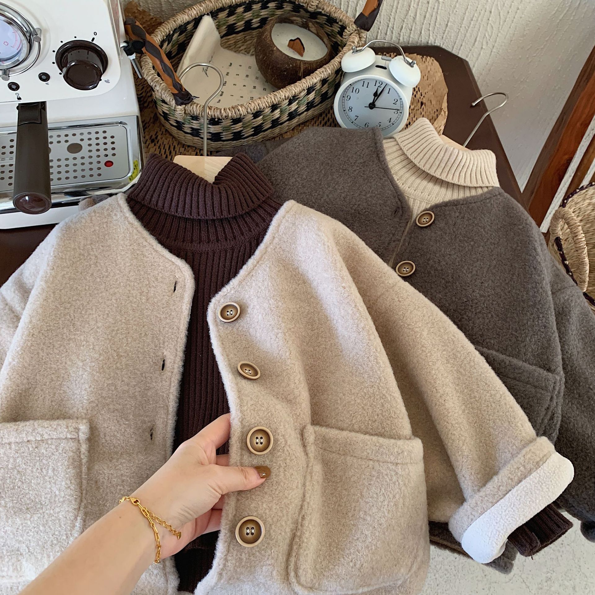 【短款新潮别具魅力!温暖守护】儿童新款秋冬外套开衫,加厚冬季宽松男童女童毛呢上衣 洋气又时尚,柔软如绒 温暖守护;冬季宽松版型,自由舒适lm