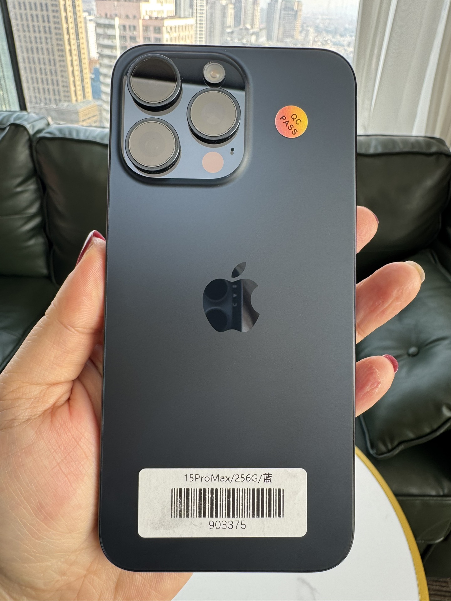 编号903375-苹果iPhone15ProMax/256G/蓝色,原装机器,国行双卡5G手机,9.8新成色好,原机电池92%,特价6599元!质检工程师已深度检测通过,请放心购买!