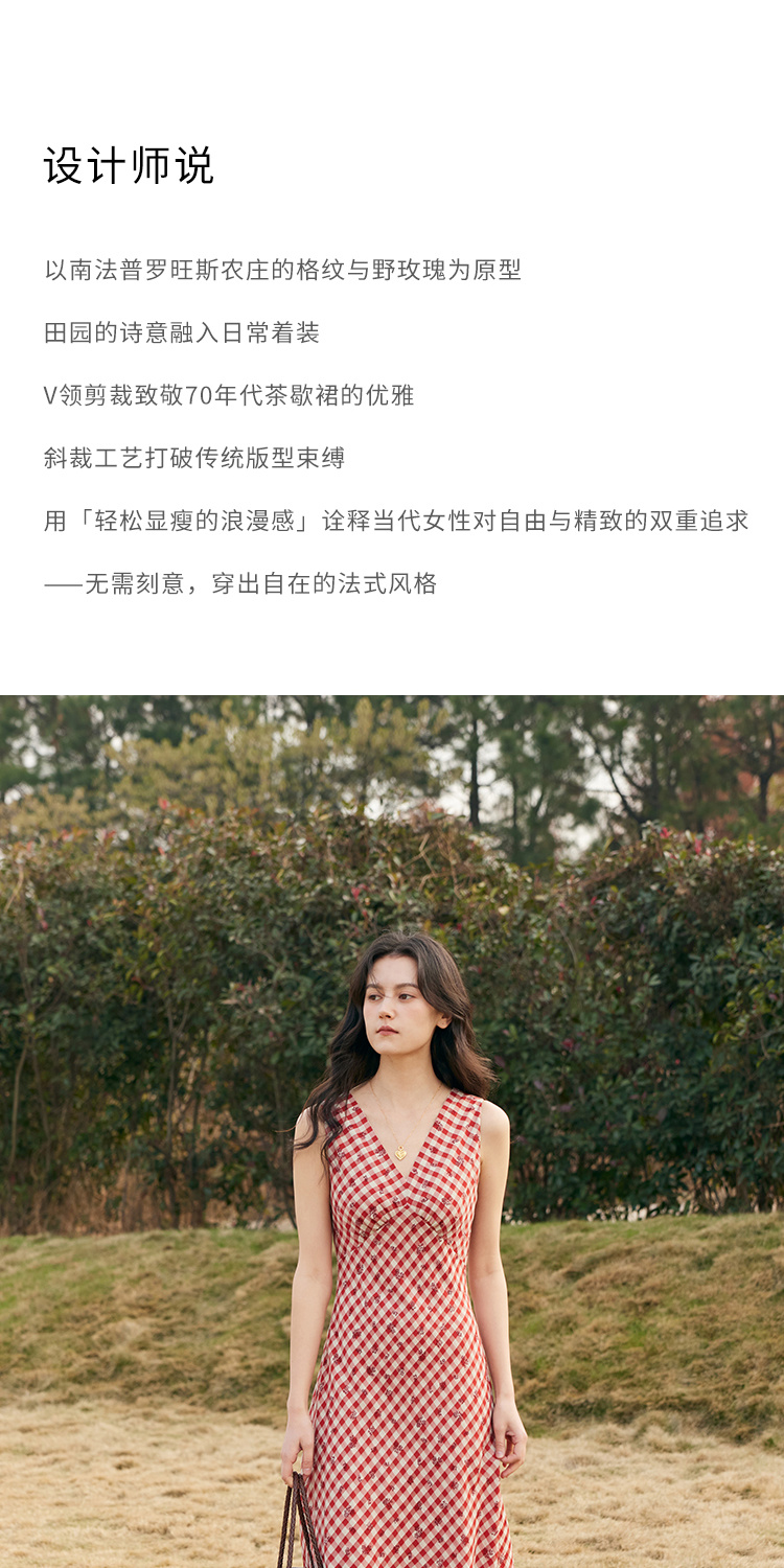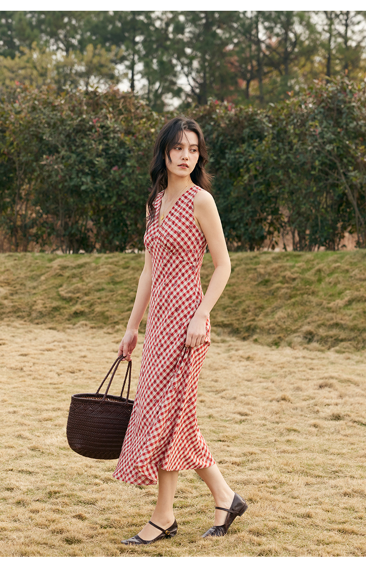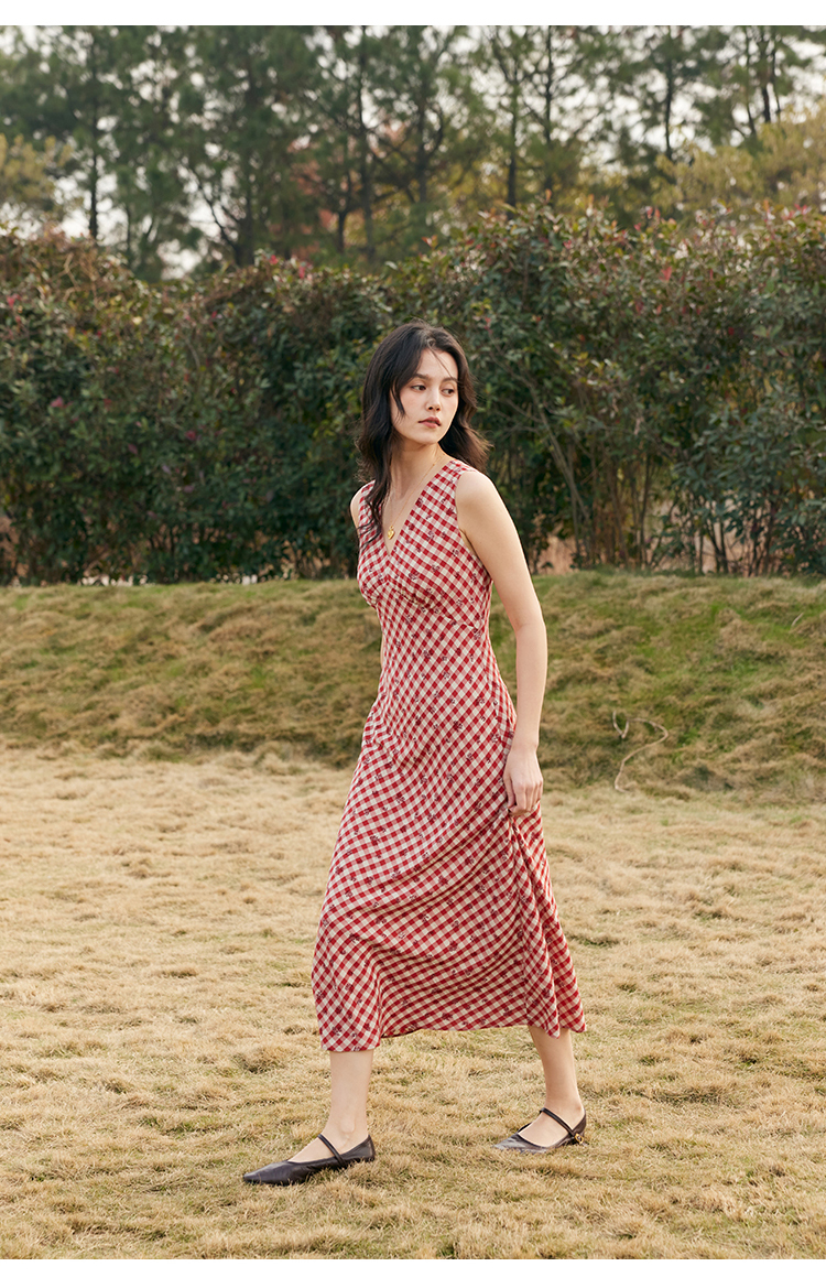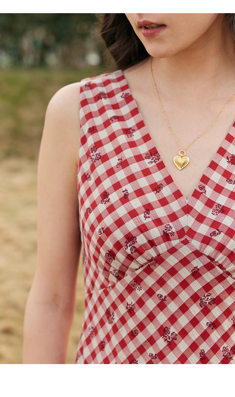 (小眠专属)HeyDress法式红色格子连衣裙女夏季小众设计感收腰显瘦背心裙子