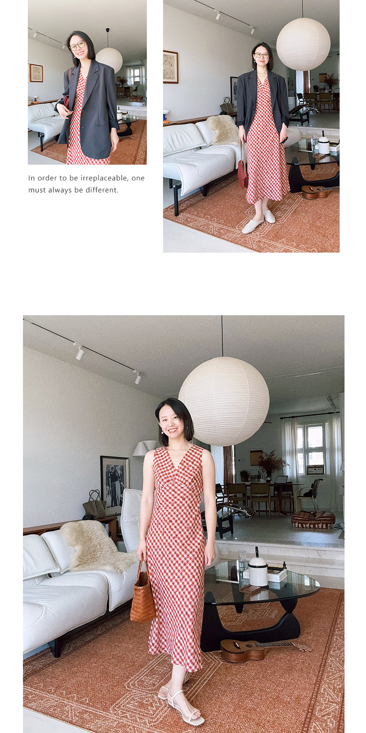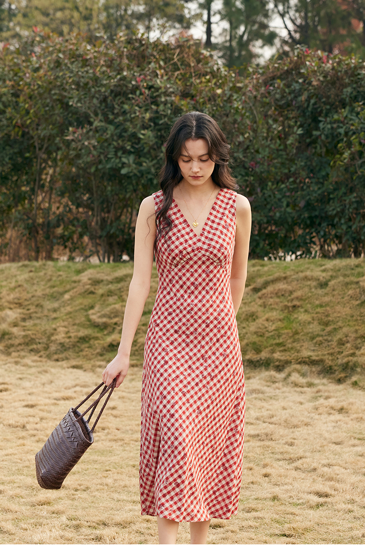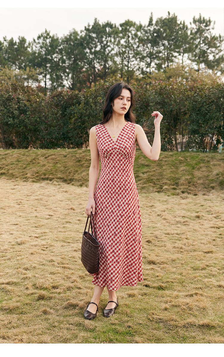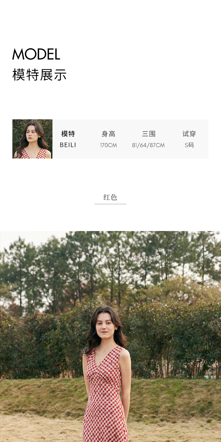 (小眠专属)HeyDress法式红色格子连衣裙女夏季小众设计感收腰显瘦背心裙子