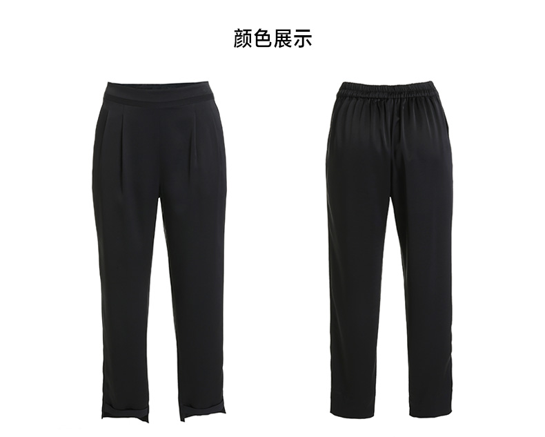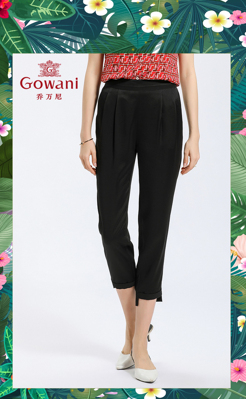 乔万尼夏季休闲裤黑色高腰显瘦哈伦修身九分小脚裤子EN2F587
