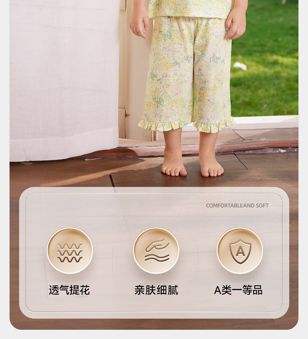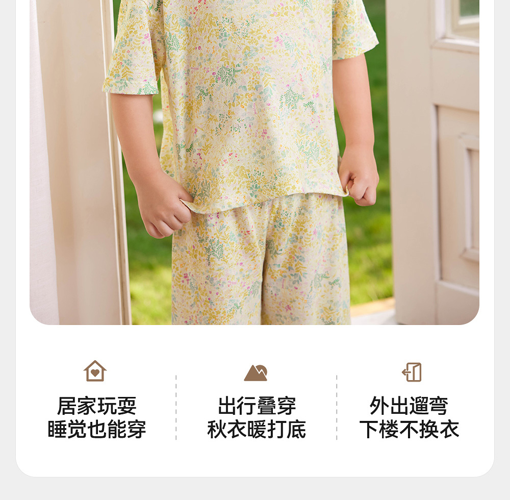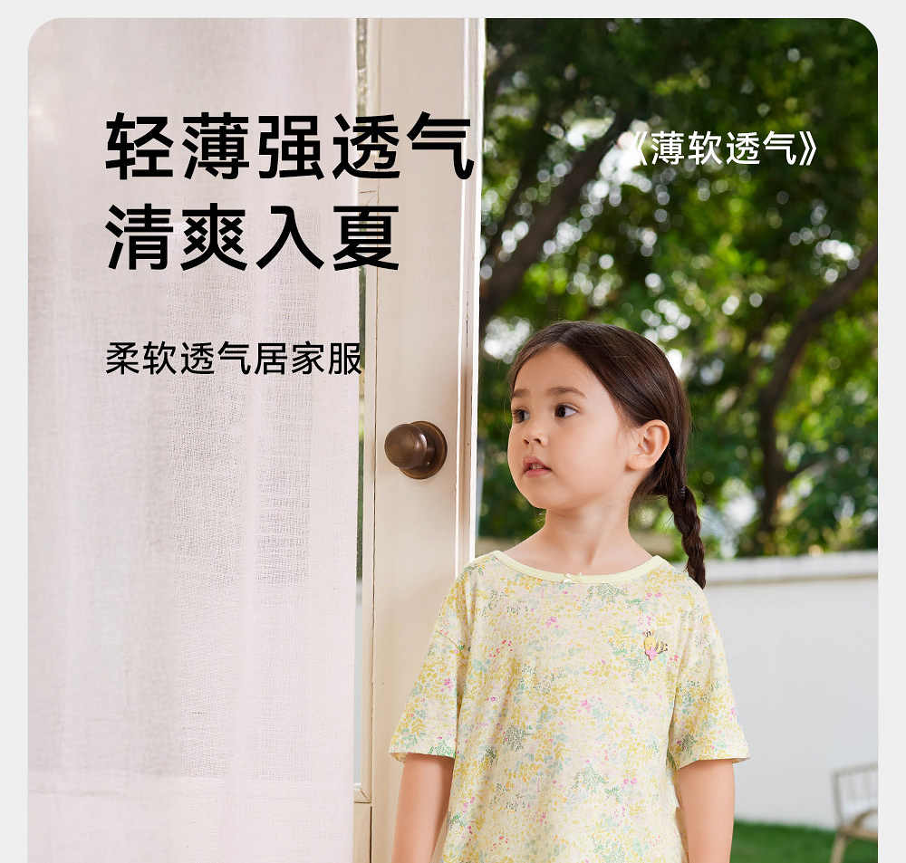 【商场同款】英氏儿童家居服夏季轻薄透气女童家居服睡衣短袖裤子