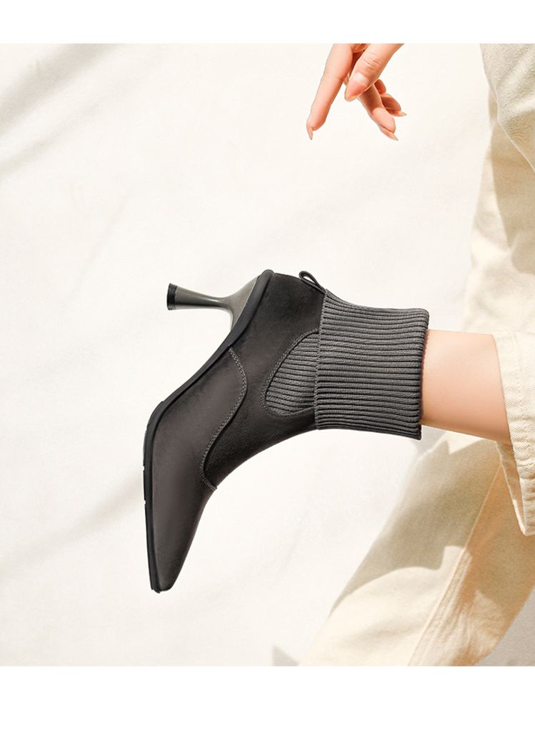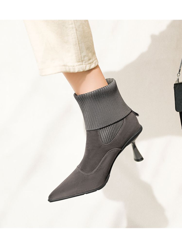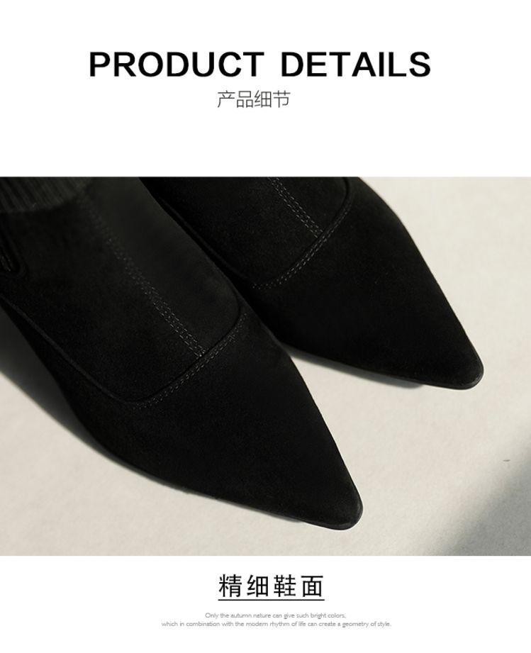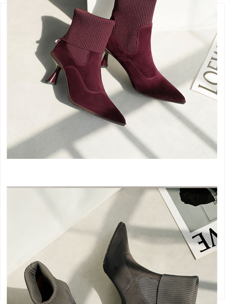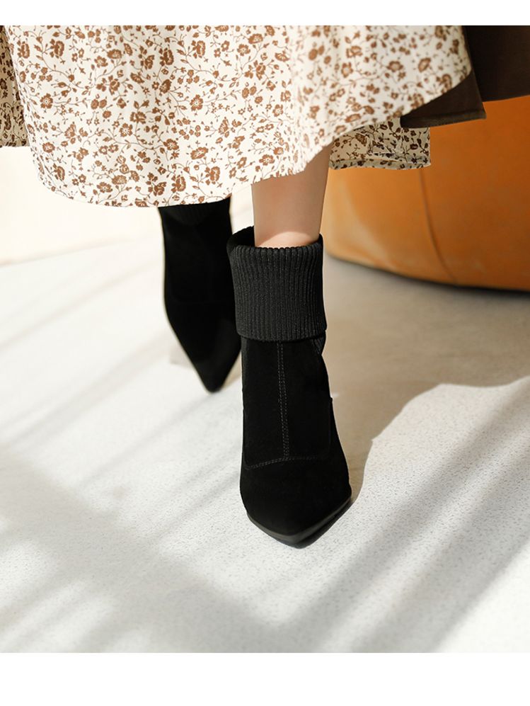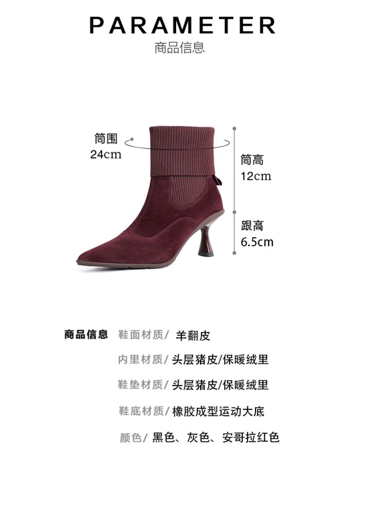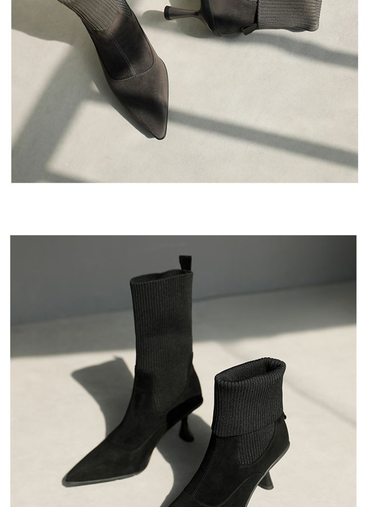 【预售5天】瘦瘦靴女秋冬新款尖头高跟鞋细跟针织弹力气质女神范中筒短靴CQSJ&HL-6079