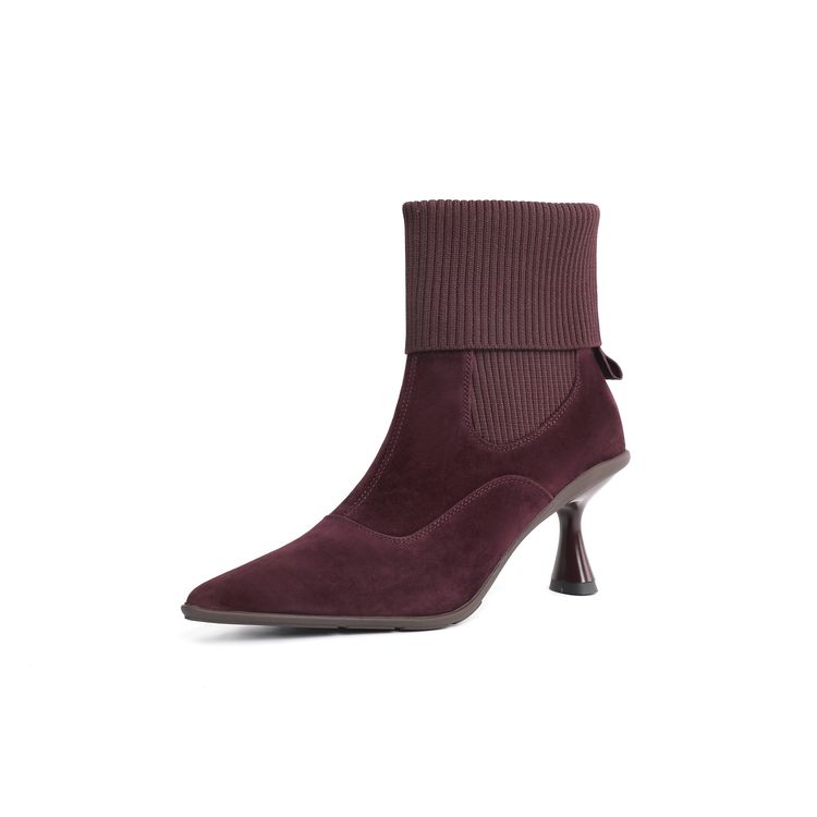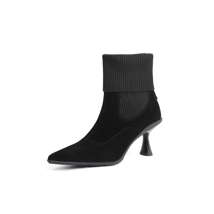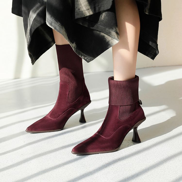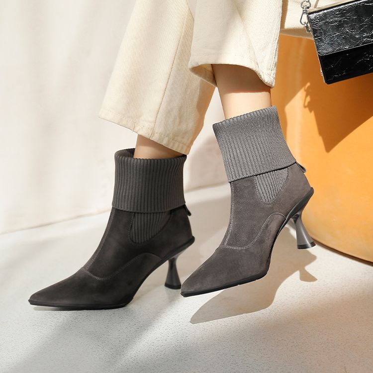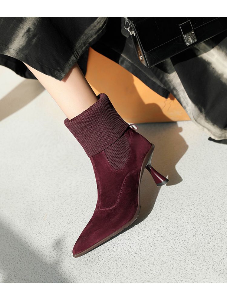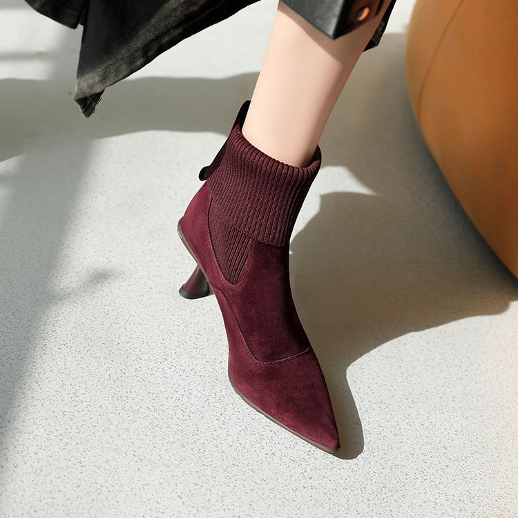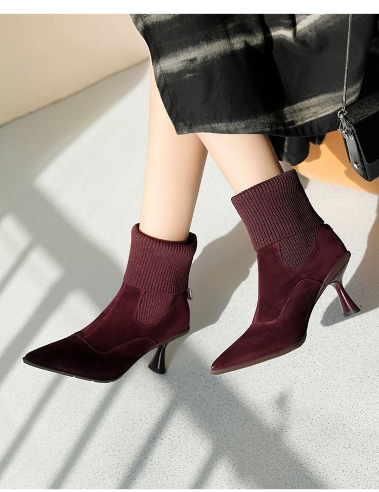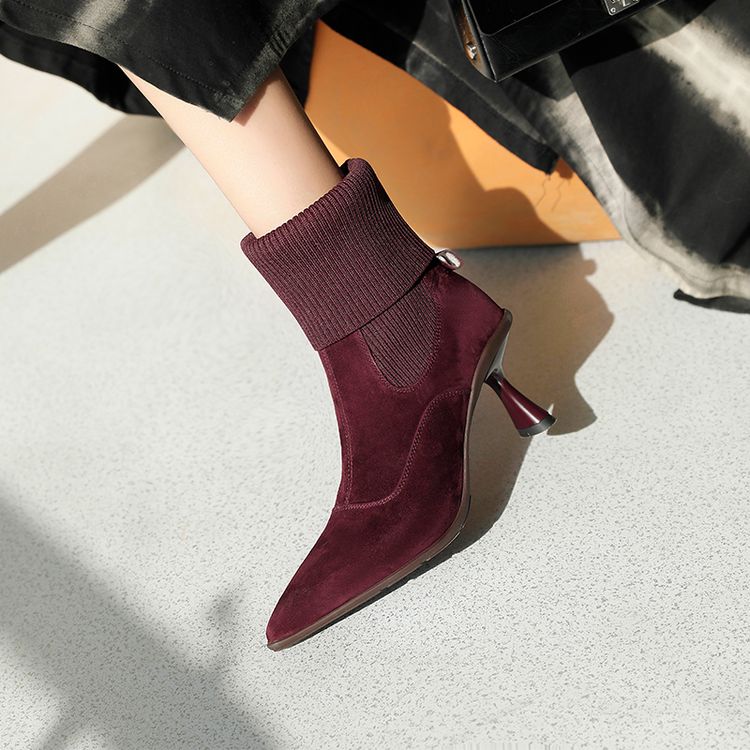 【预售5天】瘦瘦靴女秋冬新款尖头高跟鞋细跟针织弹力气质女神范中筒短靴CQSJ&HL-6079