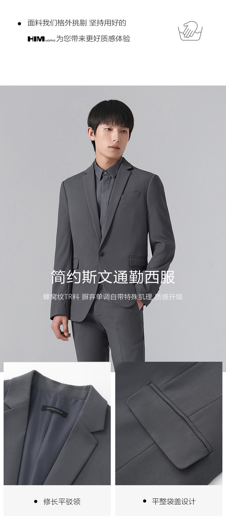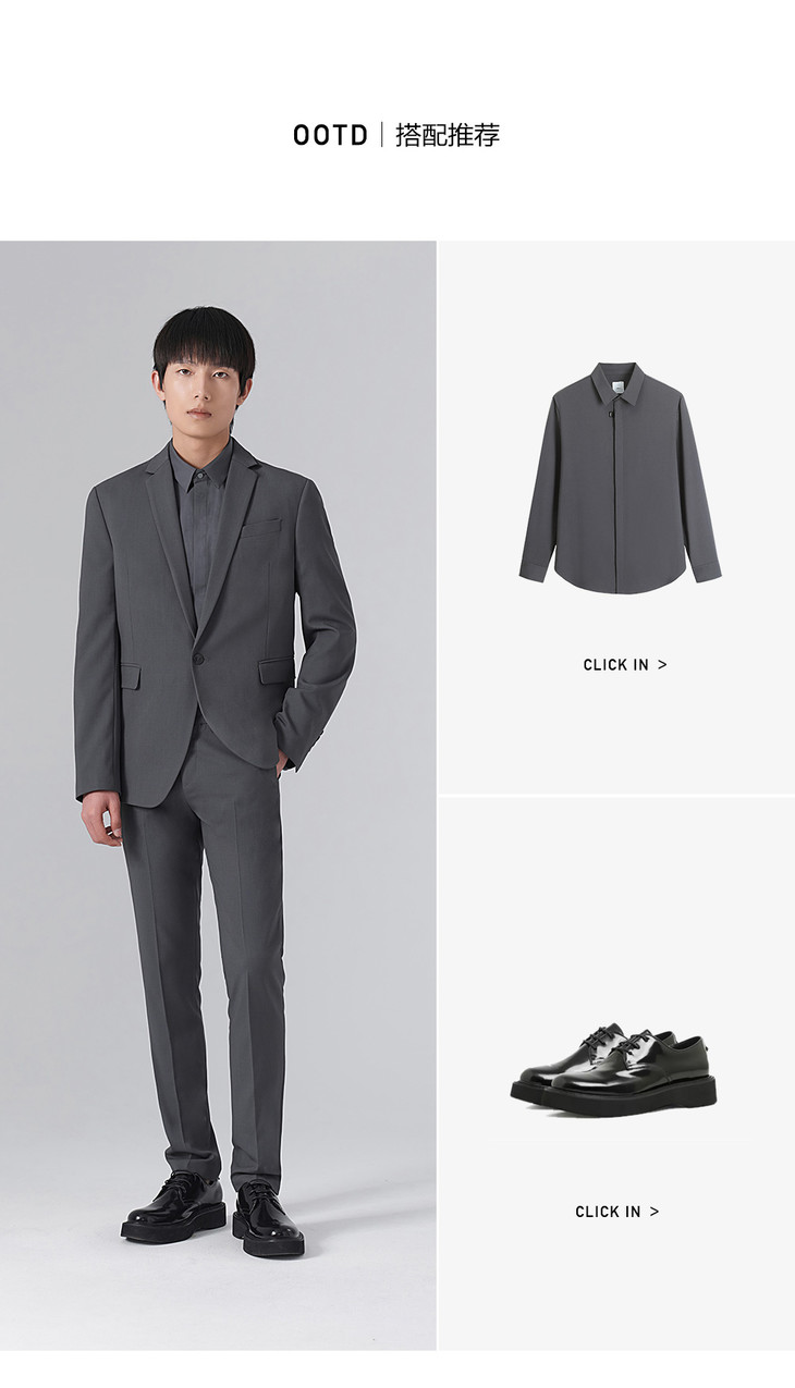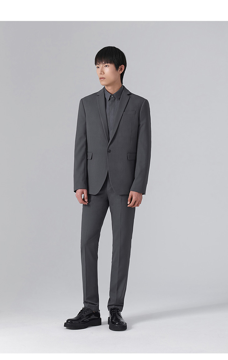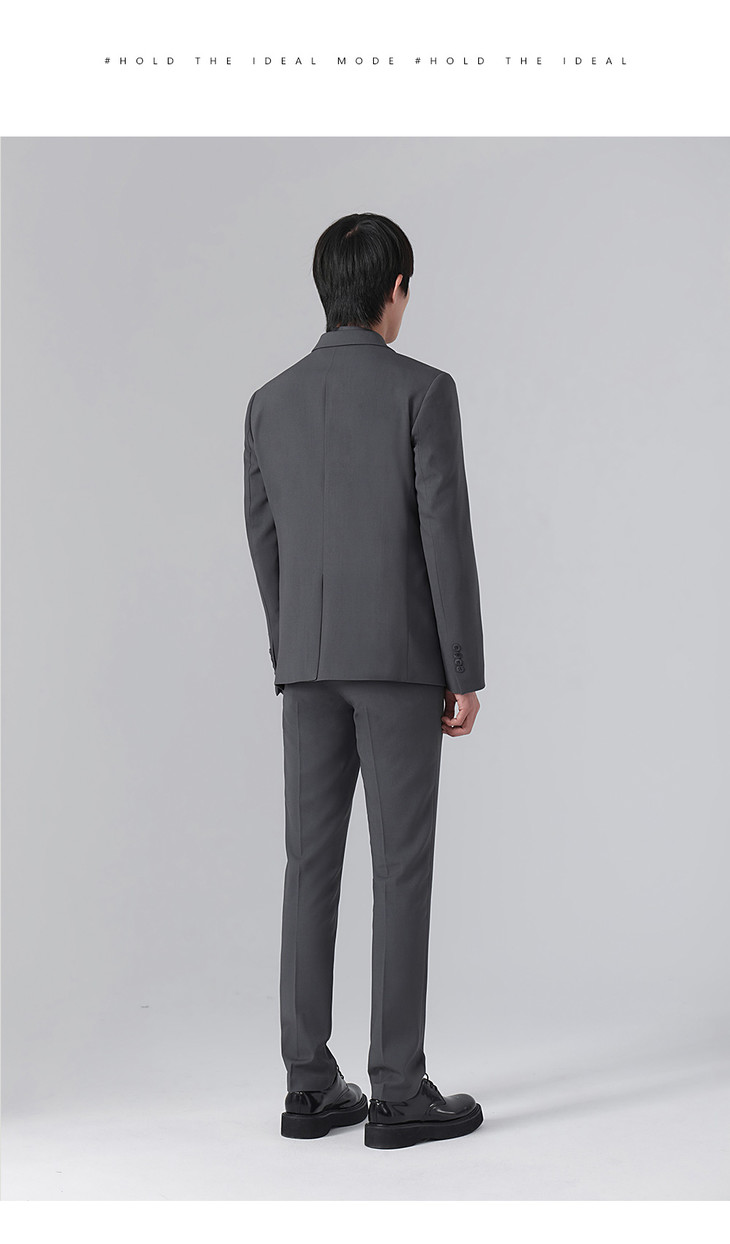 HIM漢崇 套装西装 男士通勤商务职业正装简约舒适深灰色修身西服