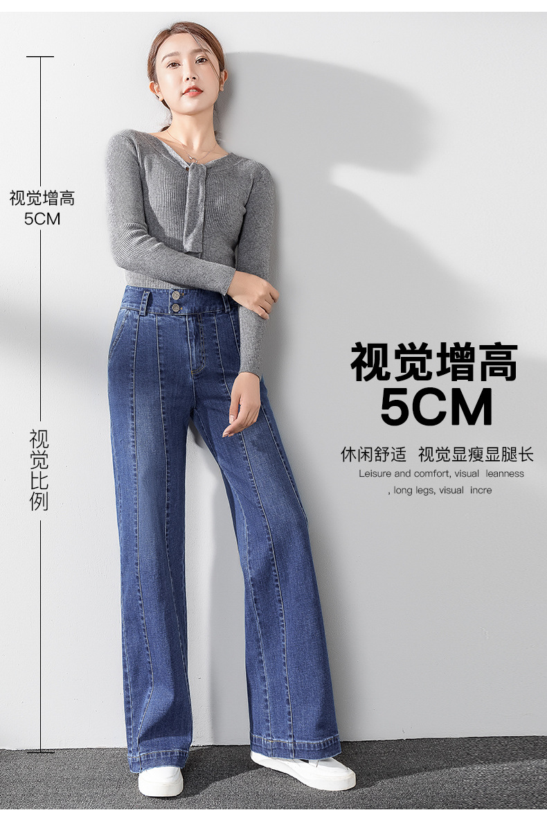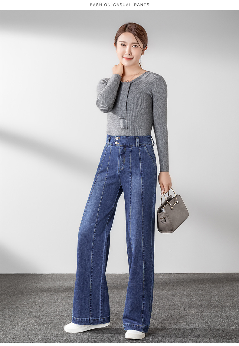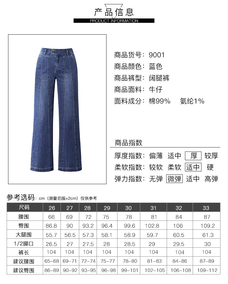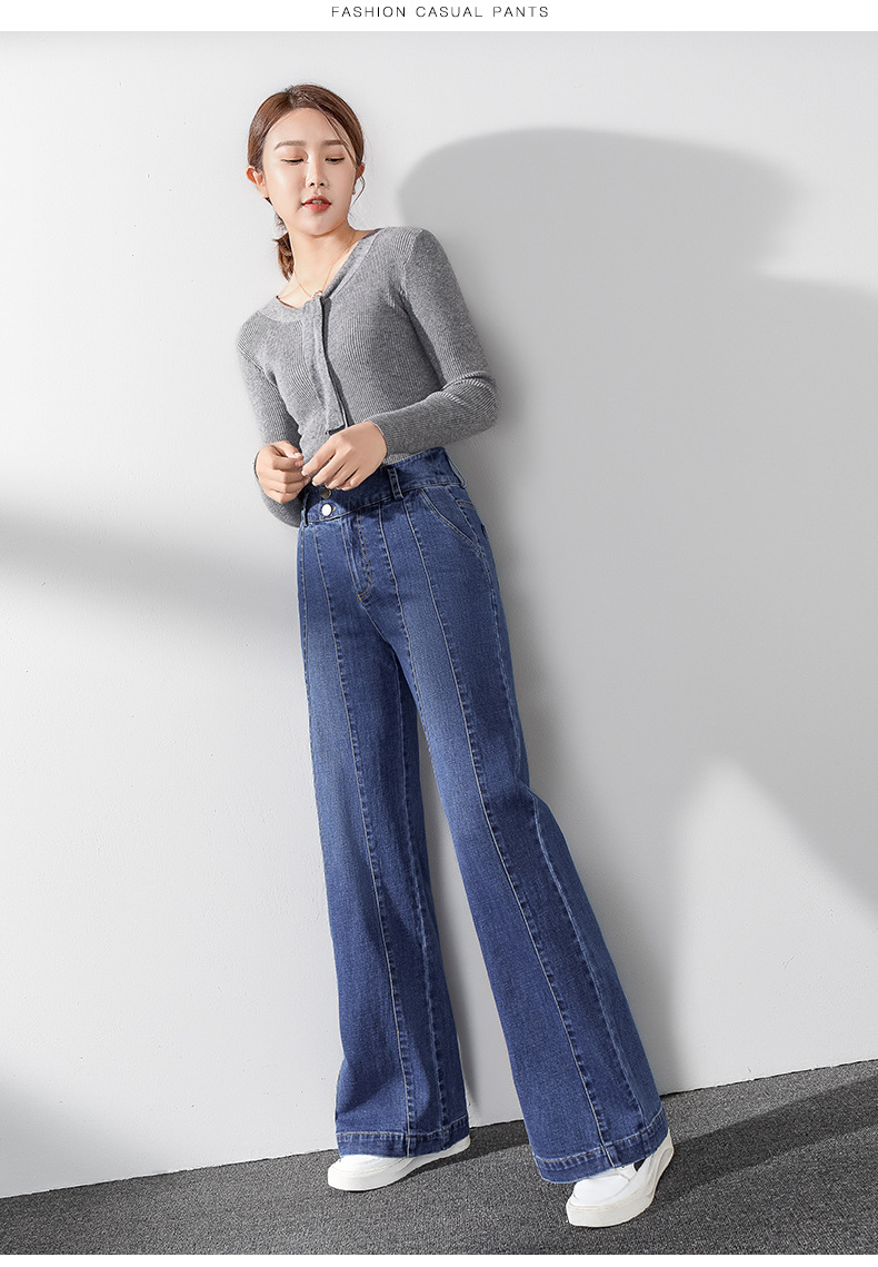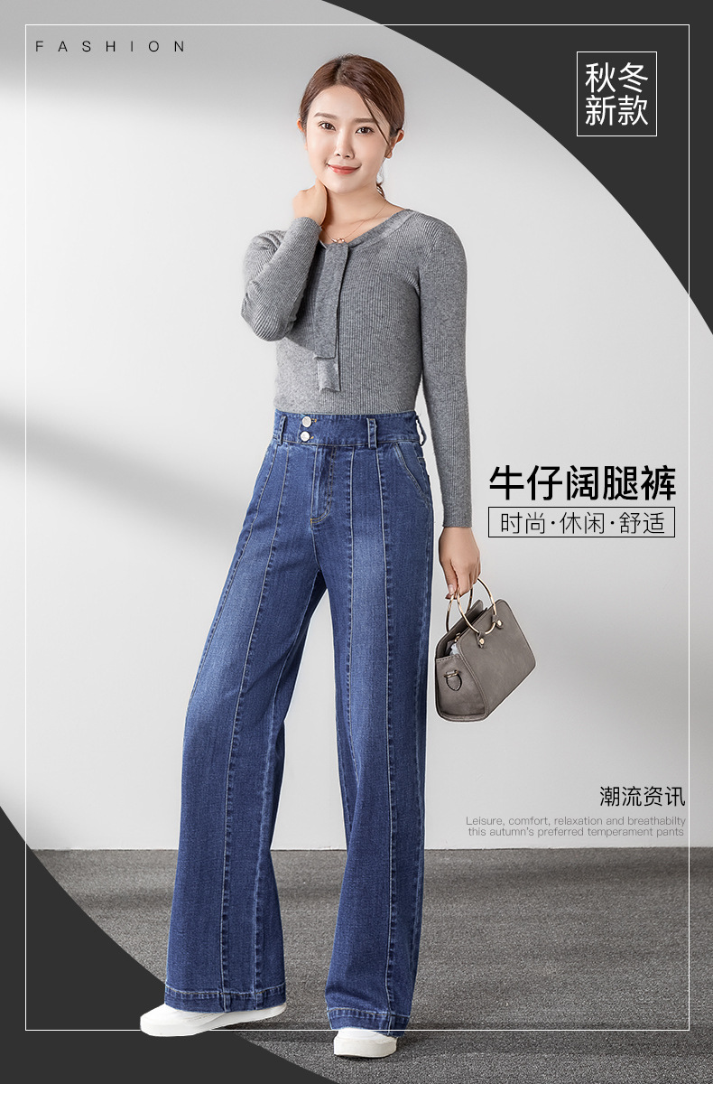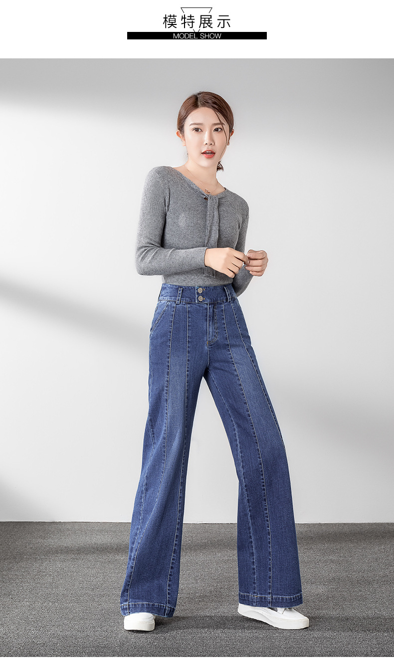 MY-9001新款韩版高腰显瘦大码直筒牛仔阔腿裤TZW
