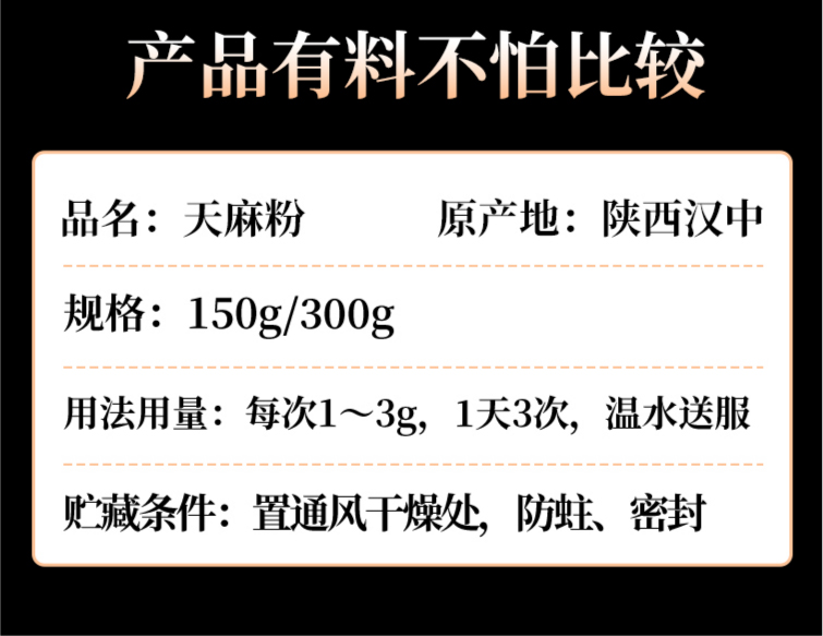 正品陕西汉中秦岭高山天麻粉150g300g仿野生种植超细粉高效吸收易溶解脑力劳动贴心守护滋补养生煲汤泡水