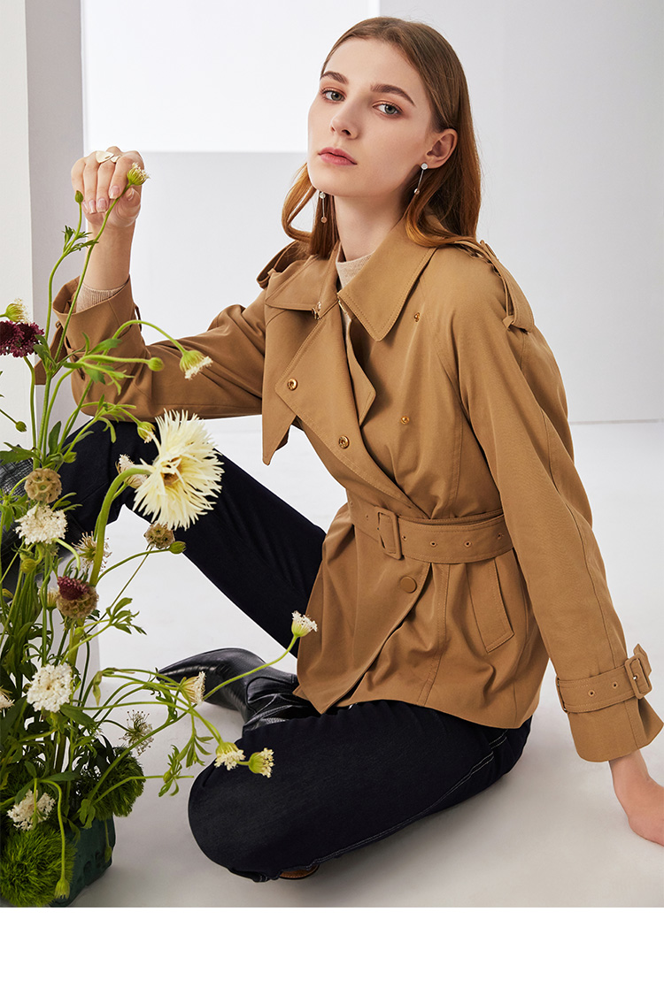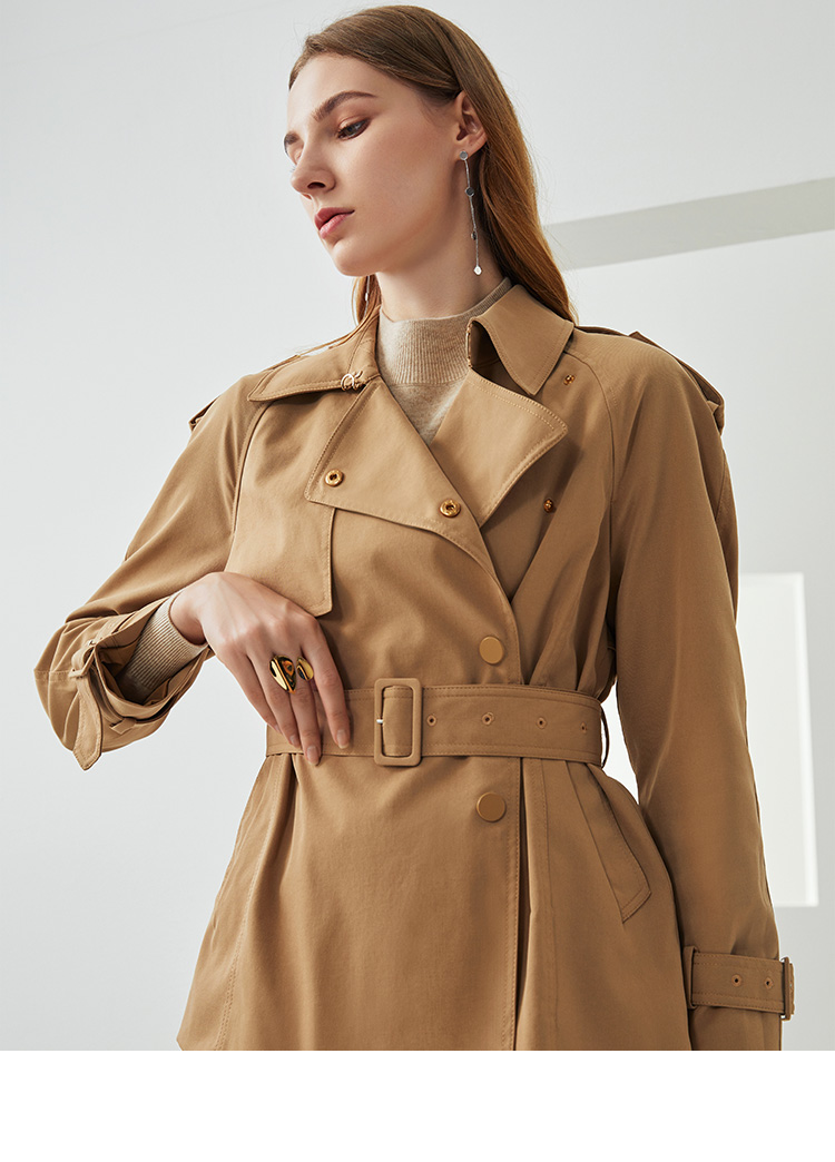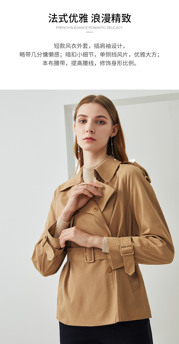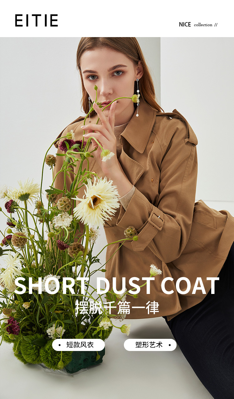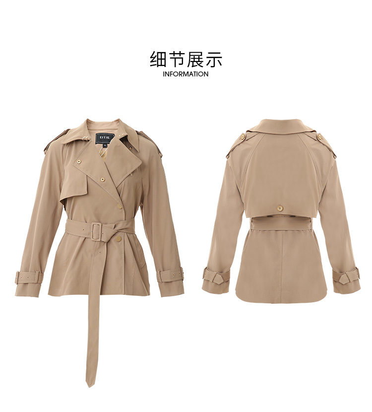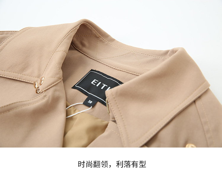 EITIE爱特爱女装秋季新款大气翻驳领挺括双排扣优雅风衣外套D1904335