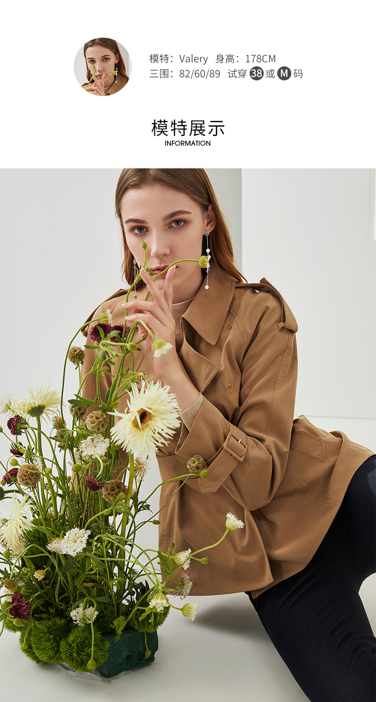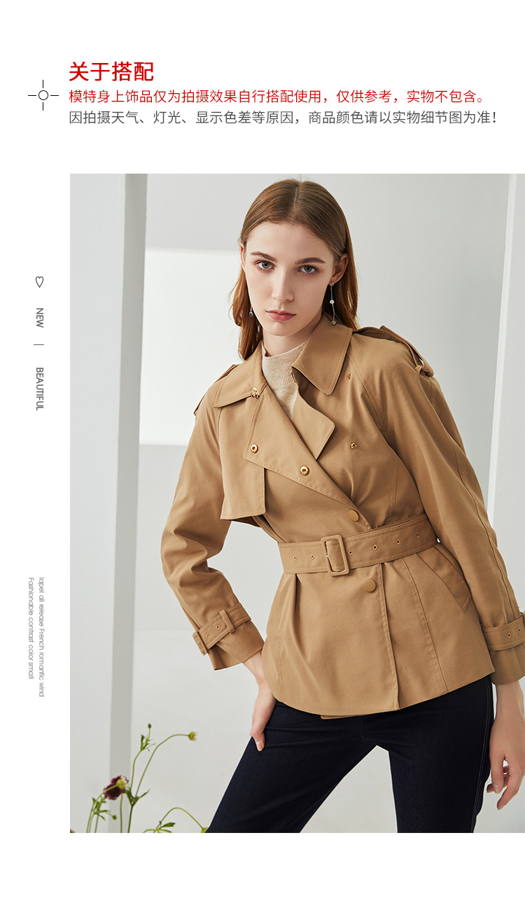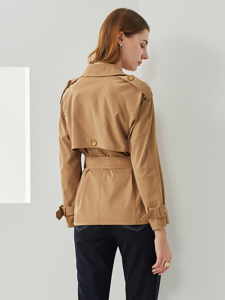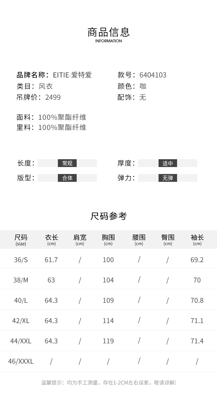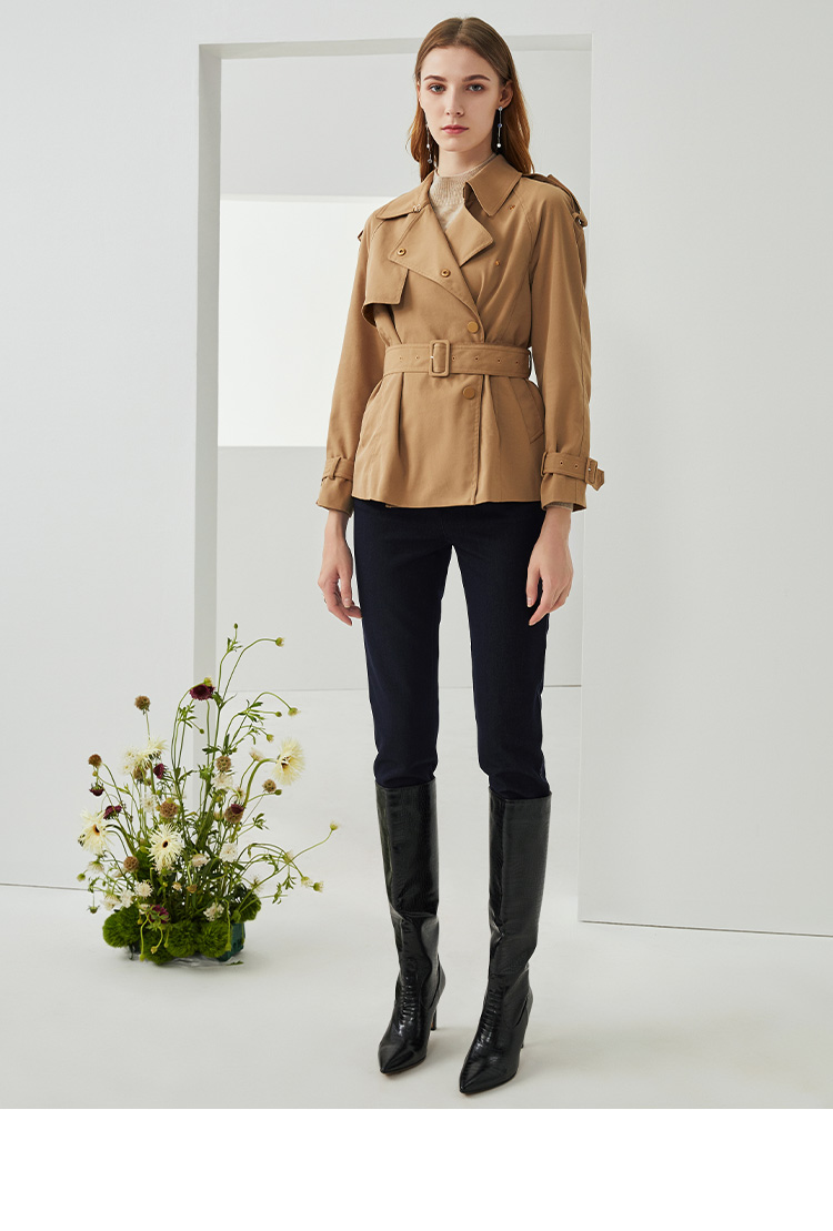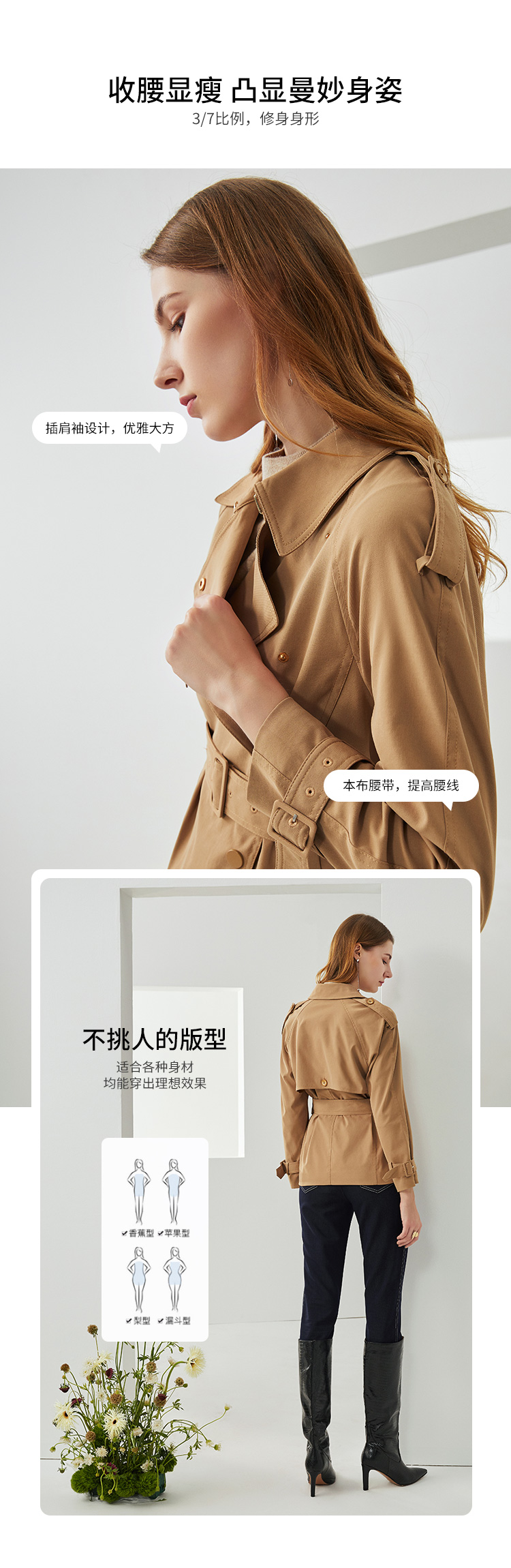 EITIE爱特爱女装秋季新款大气翻驳领挺括双排扣优雅风衣外套D1904335