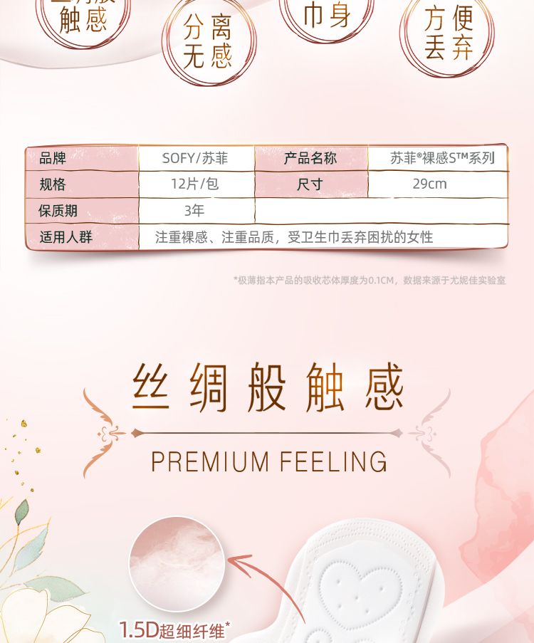 苏菲12片290mm裸感S夜用卫生巾