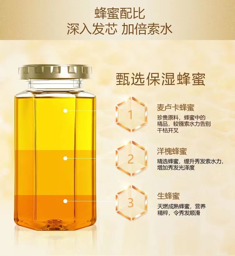 蜂蜜系列:适合分叉干枯毛躁,经常烫染,受损严重,不好打理的发质;