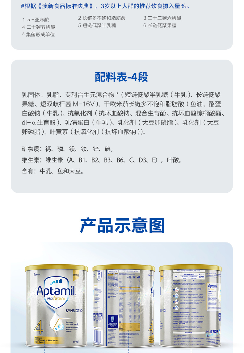 【海外直邮】澳洲Aptamil爱他美奶粉白金版4段900g