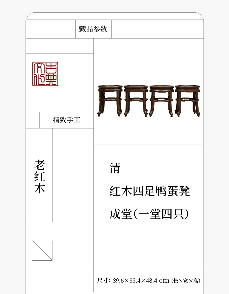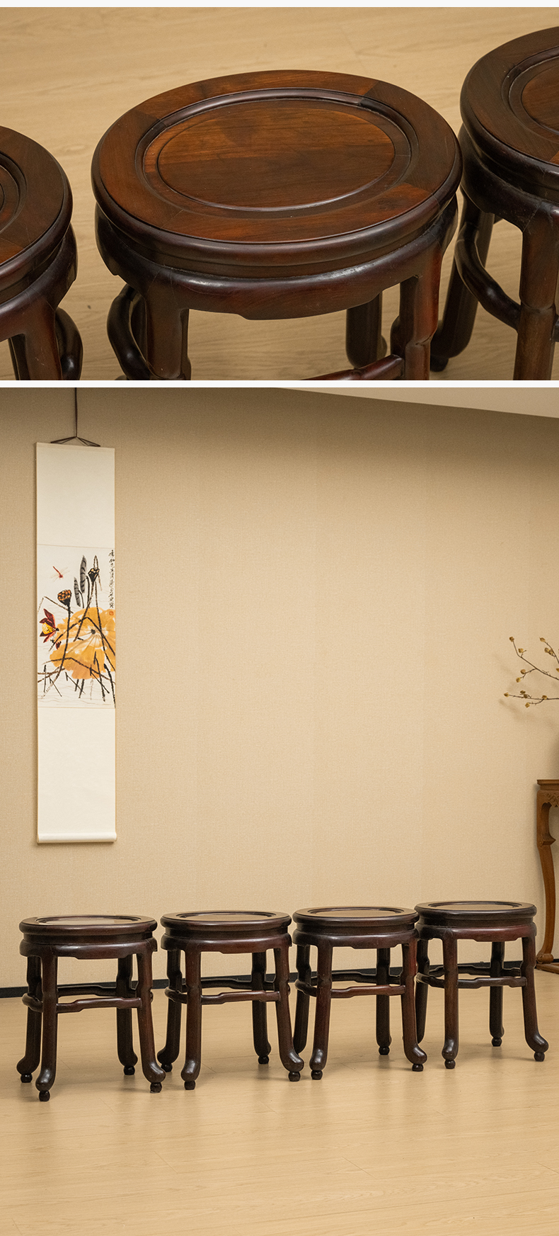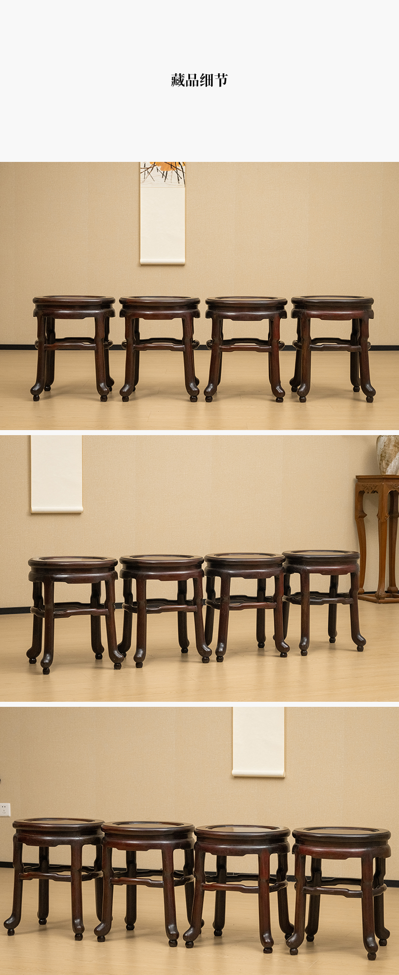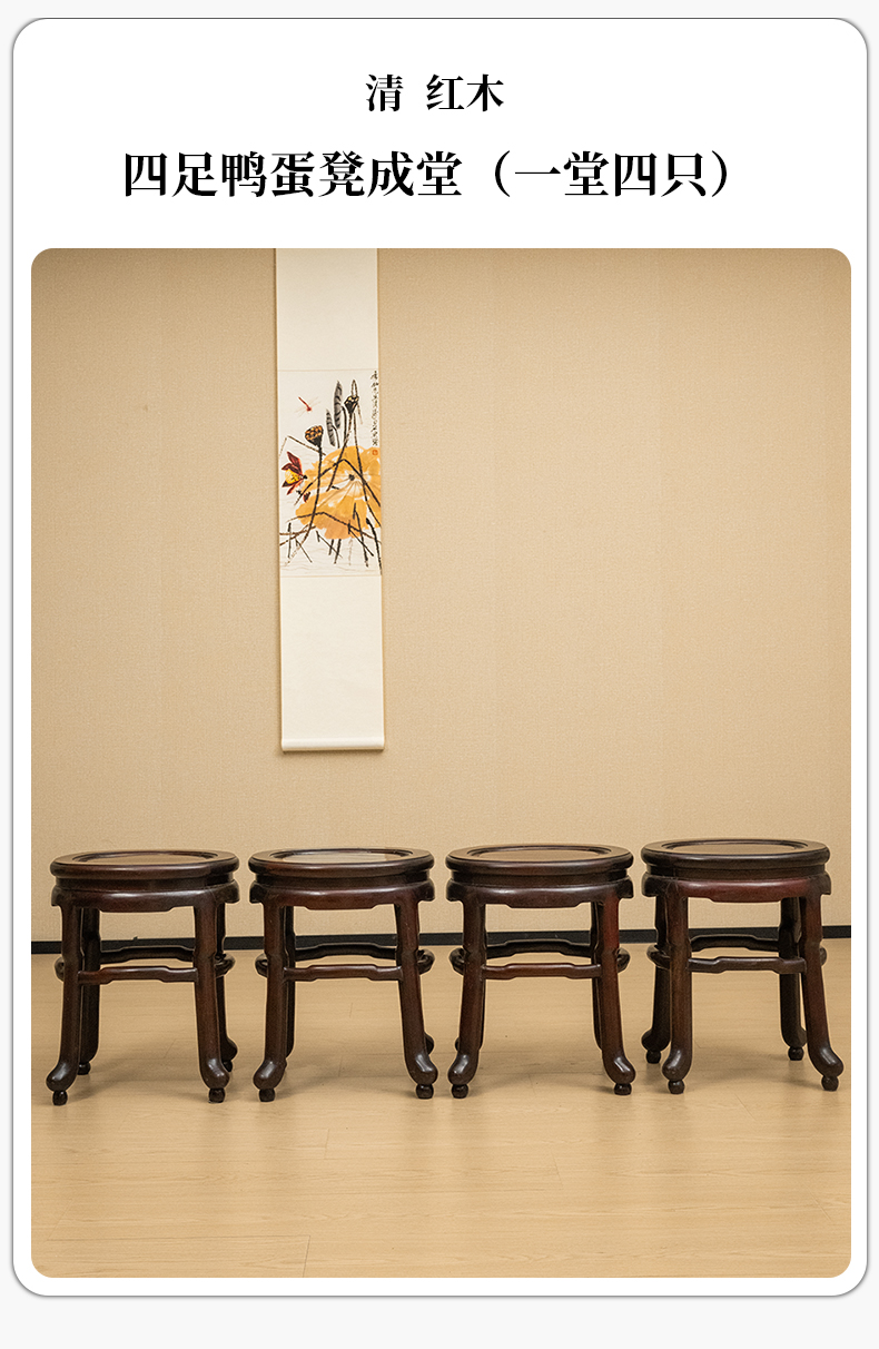 清 红木四足鸭蛋凳成堂(一堂四只)