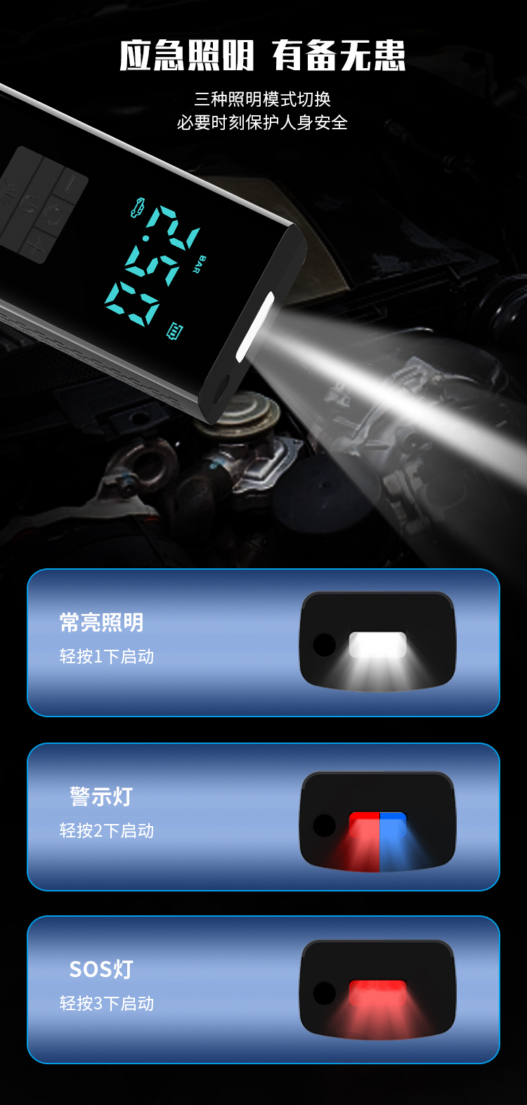 『应急启动/充气/照明/移动充电』四合一应急神器