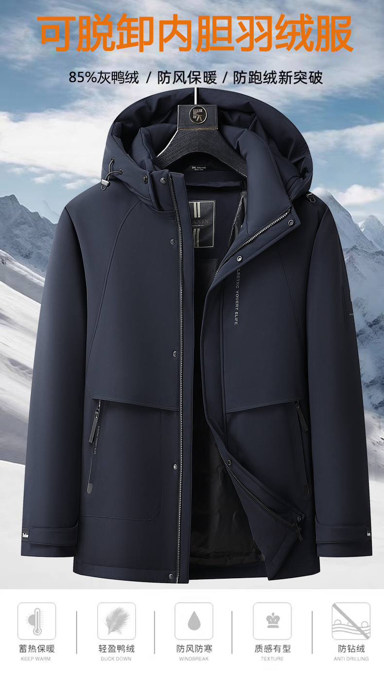 【特大码】【可拆卸内胆】【新款DBW】大依优型大码羽绒服三合一外套休闲胖子大码男休闲宽松加肥加大上衣